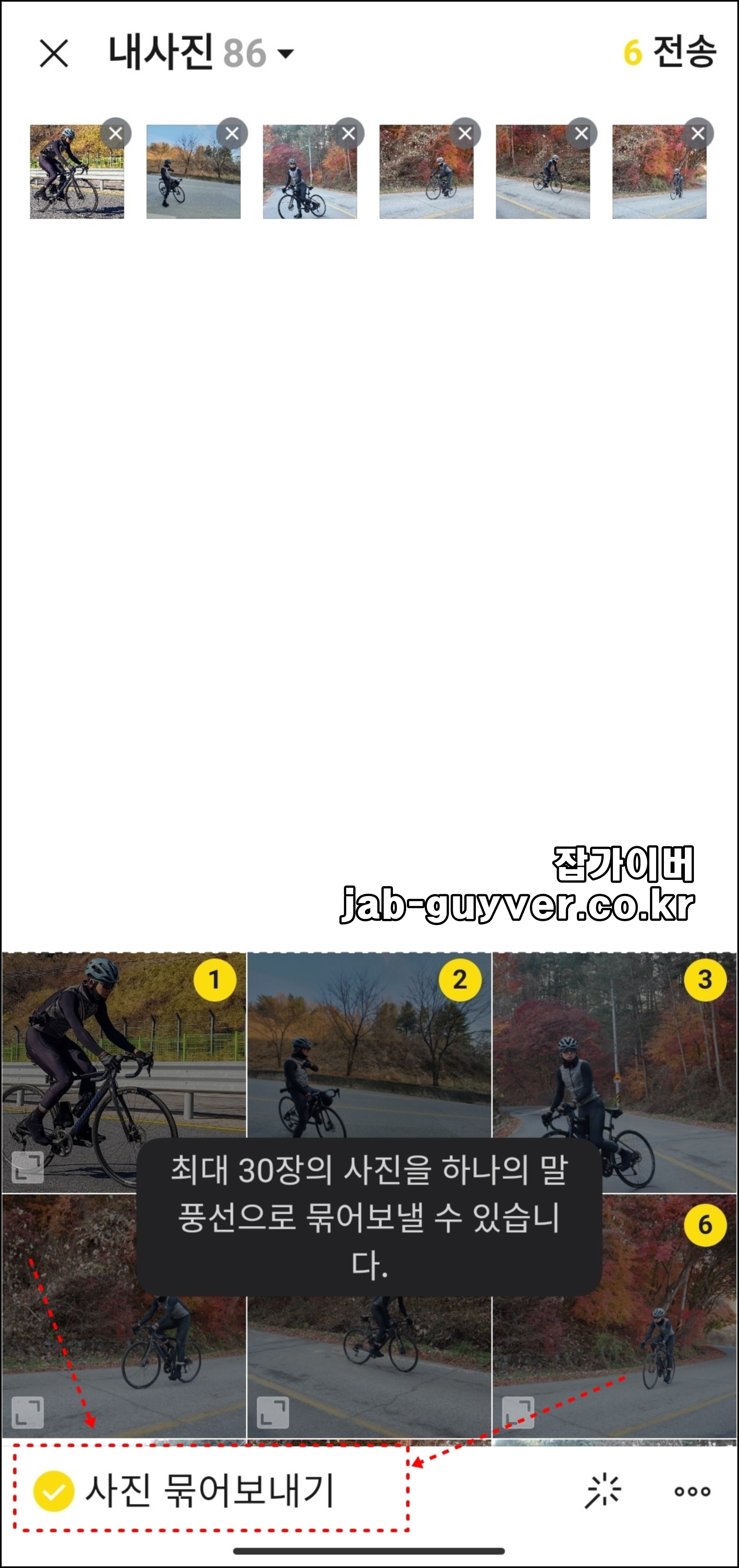 - 최대 30장의 사진을 하나의 말풍선으로 묶어보낼 수 있습니다.