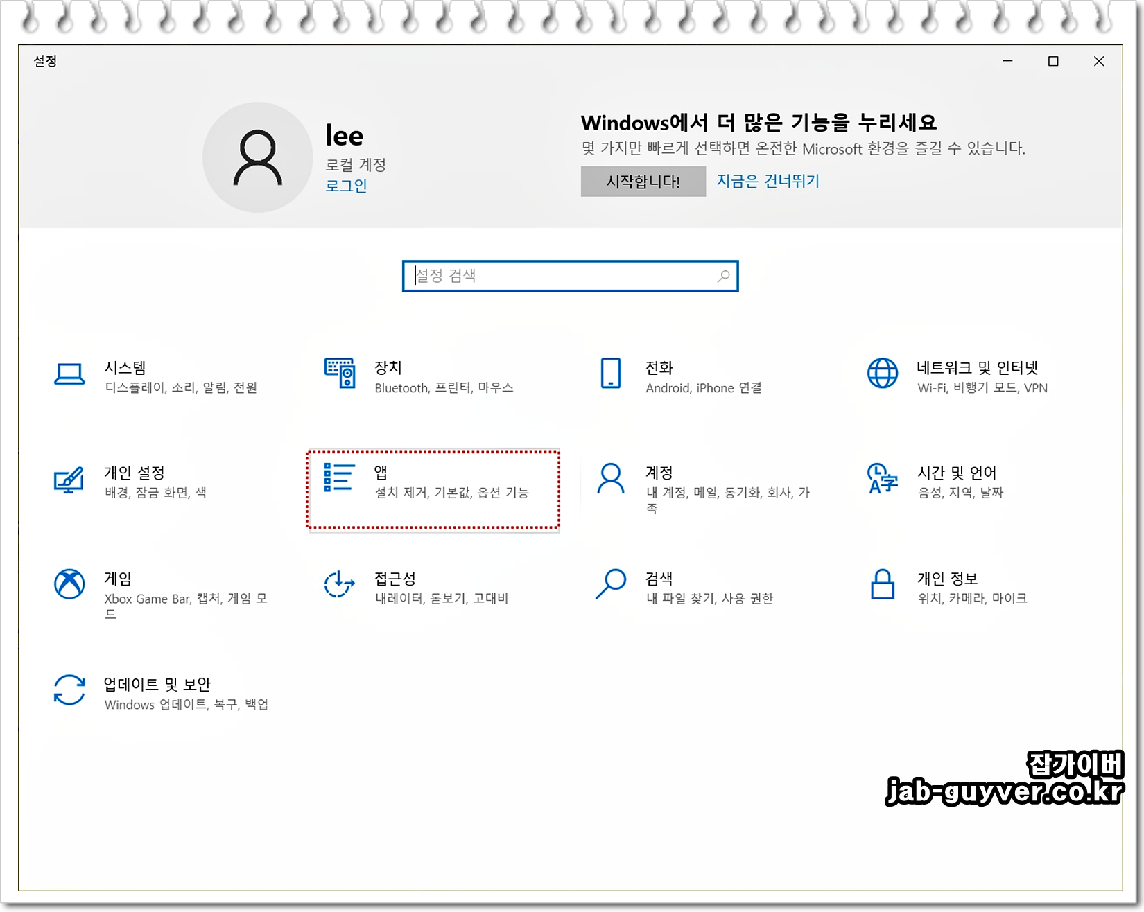 3. 설정 창에서 "앱" 또는 "앱 및 기능" 옵션으로 들어갑니다.