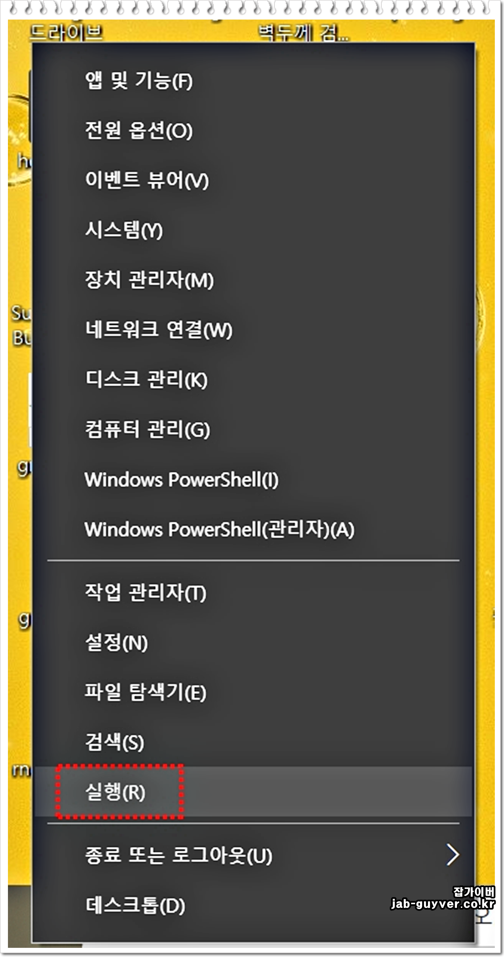 1. 화면 좌측 하단의 Windows 로고를 마우스 우클릭합니다.