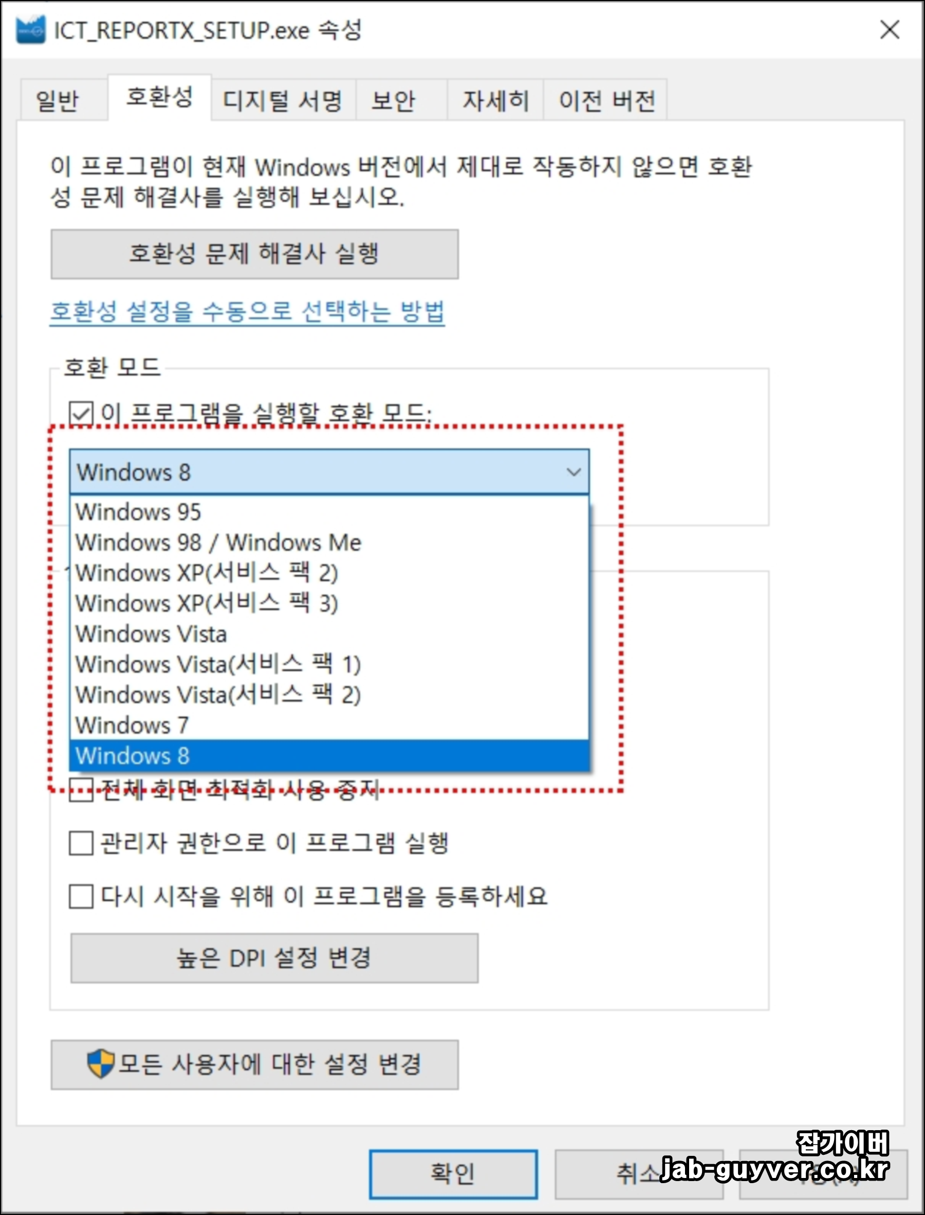 윈도우10 호환성 Windows8,7,XP 실행방법