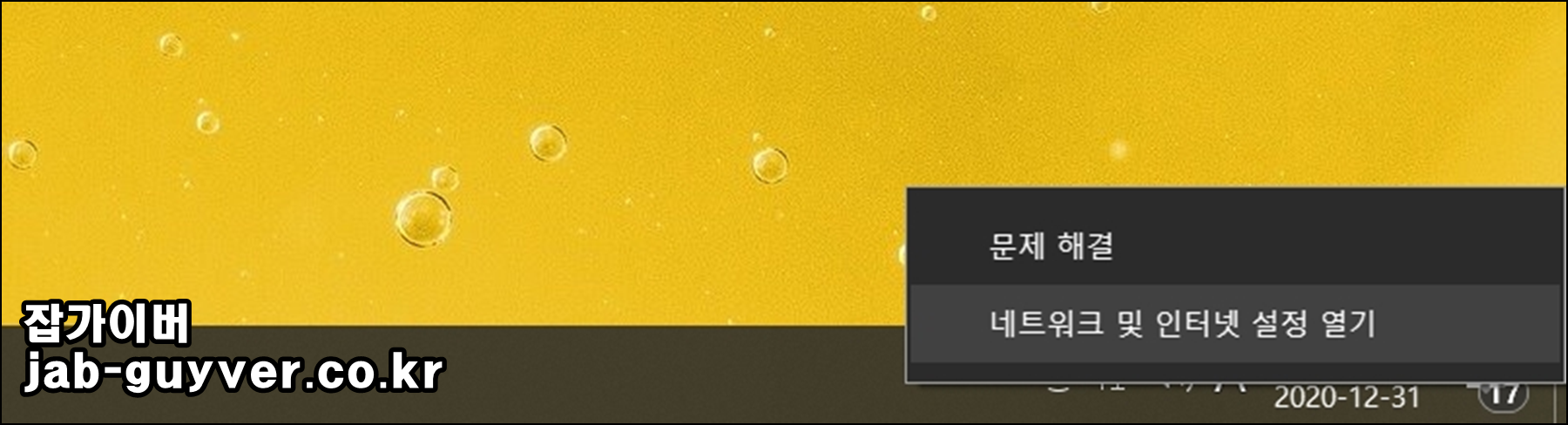 좌측하단 네트워크 아이콘을 우클릭 후 네트워크 및 인터넷 설정열기 선택합니다.