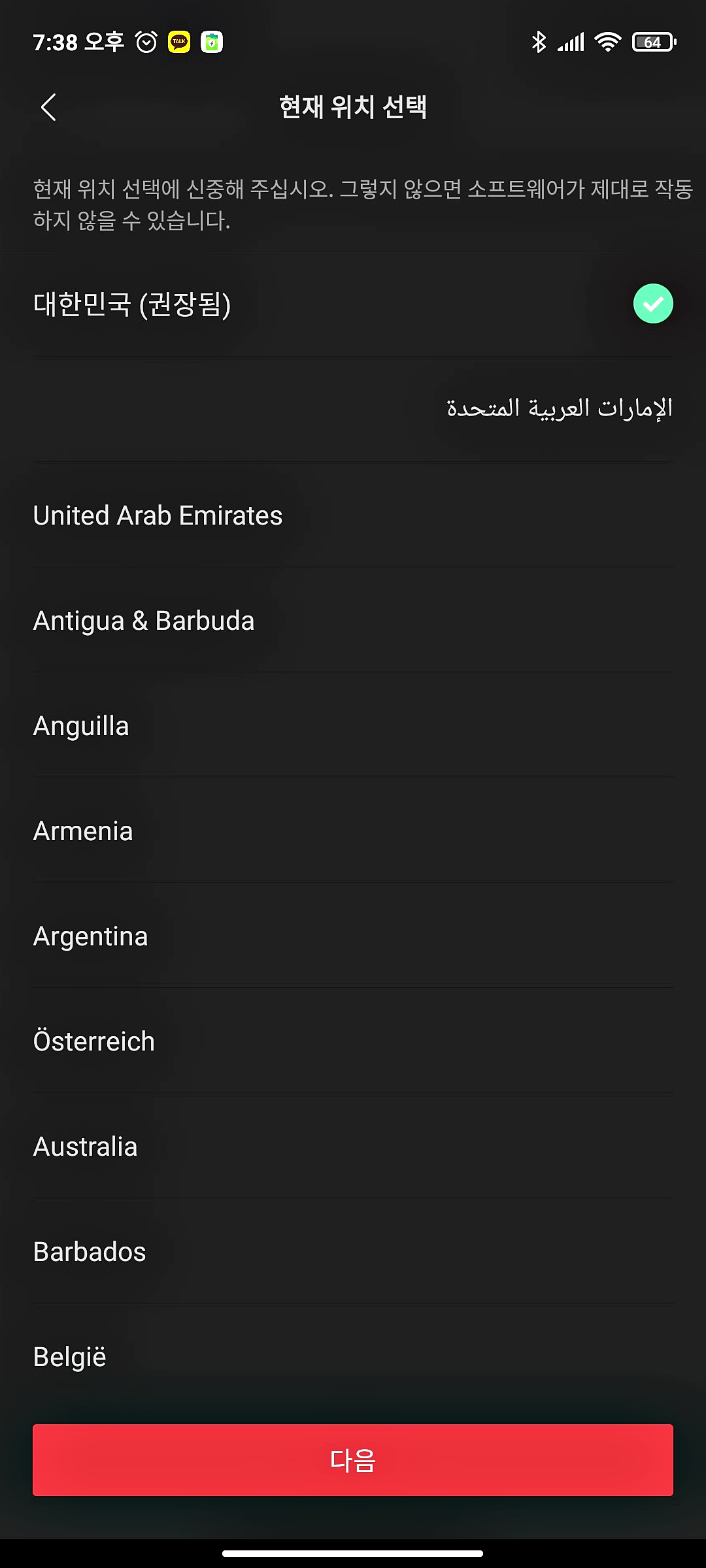 설치 후 앱을 실행하면 글로벌 버전 기준 자동으로 대한민국으로 권장 선택됩니다.