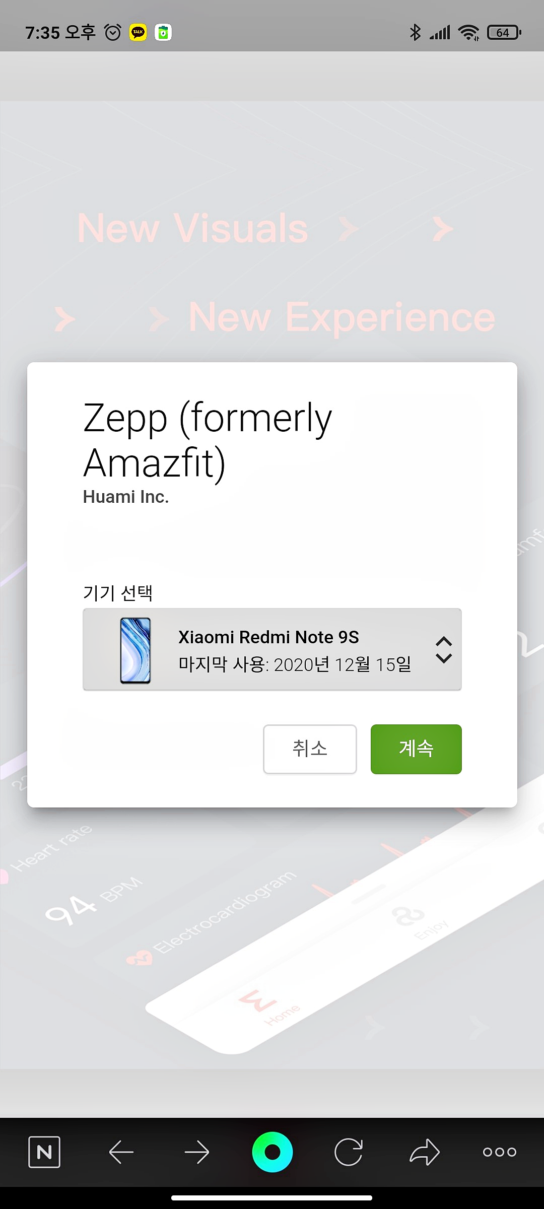 이후 사용 중인 샤오미 어메이즈핏 동기화를 위해 페어링을 진행합니다.