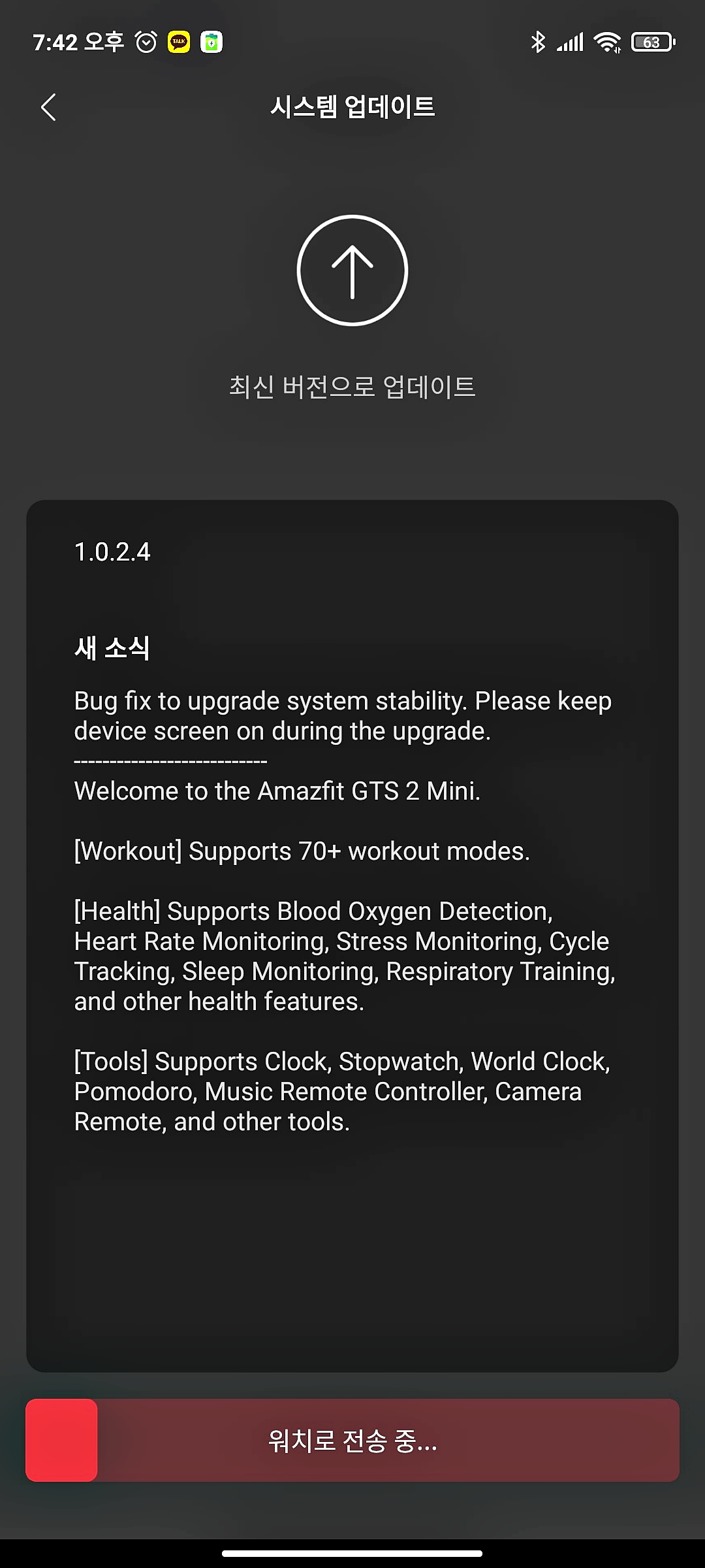 샤오미 어메이즈핏 GTS2 글로벌 버전 기준 업데이트를 하지 않으면 한글 패치가 되지 않기 때문에 한글판을 사용할 분들은 꼭 펌웨어 업데이트를 진행합니다.