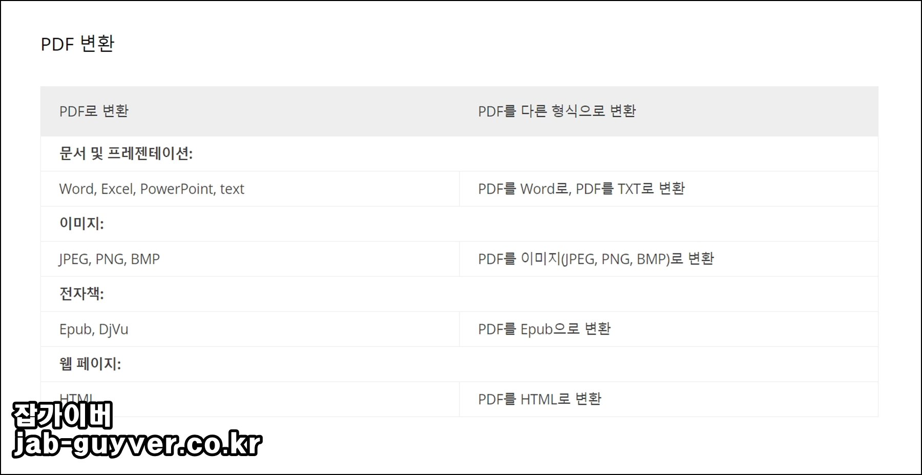 기본적으로 엑셀,워드,파워포인트등의 포맷변환을 모두 지원합니다.