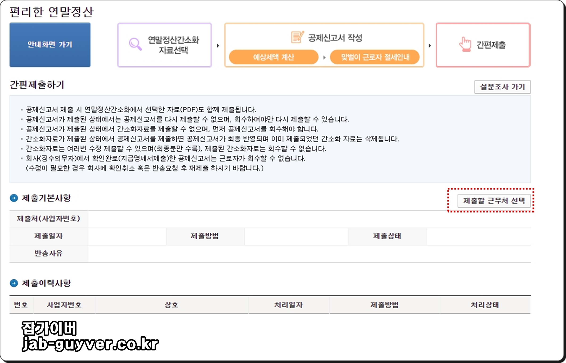 제출할 근무처를 선택해서 연말정산 간소화자료를 제출합니다.