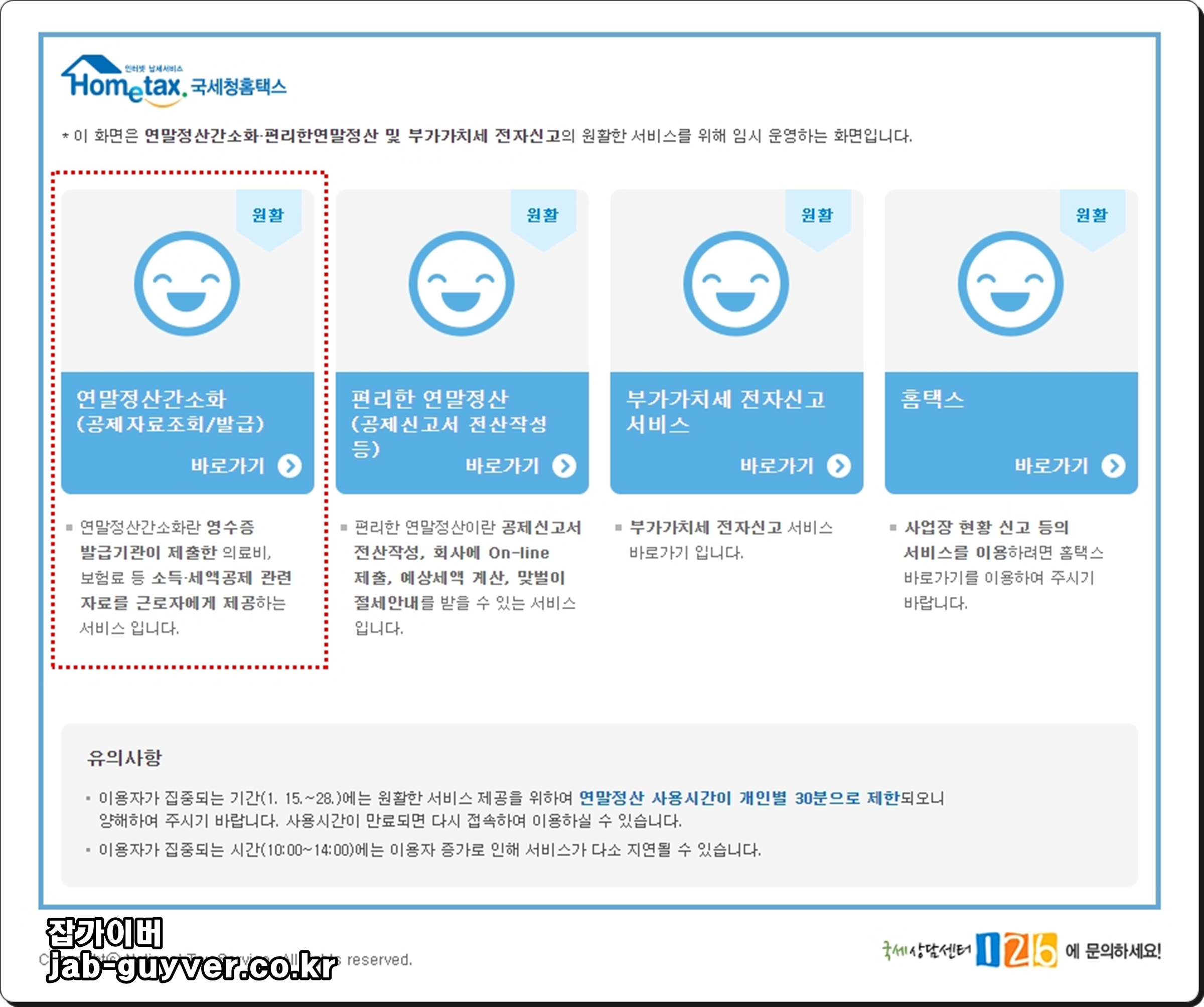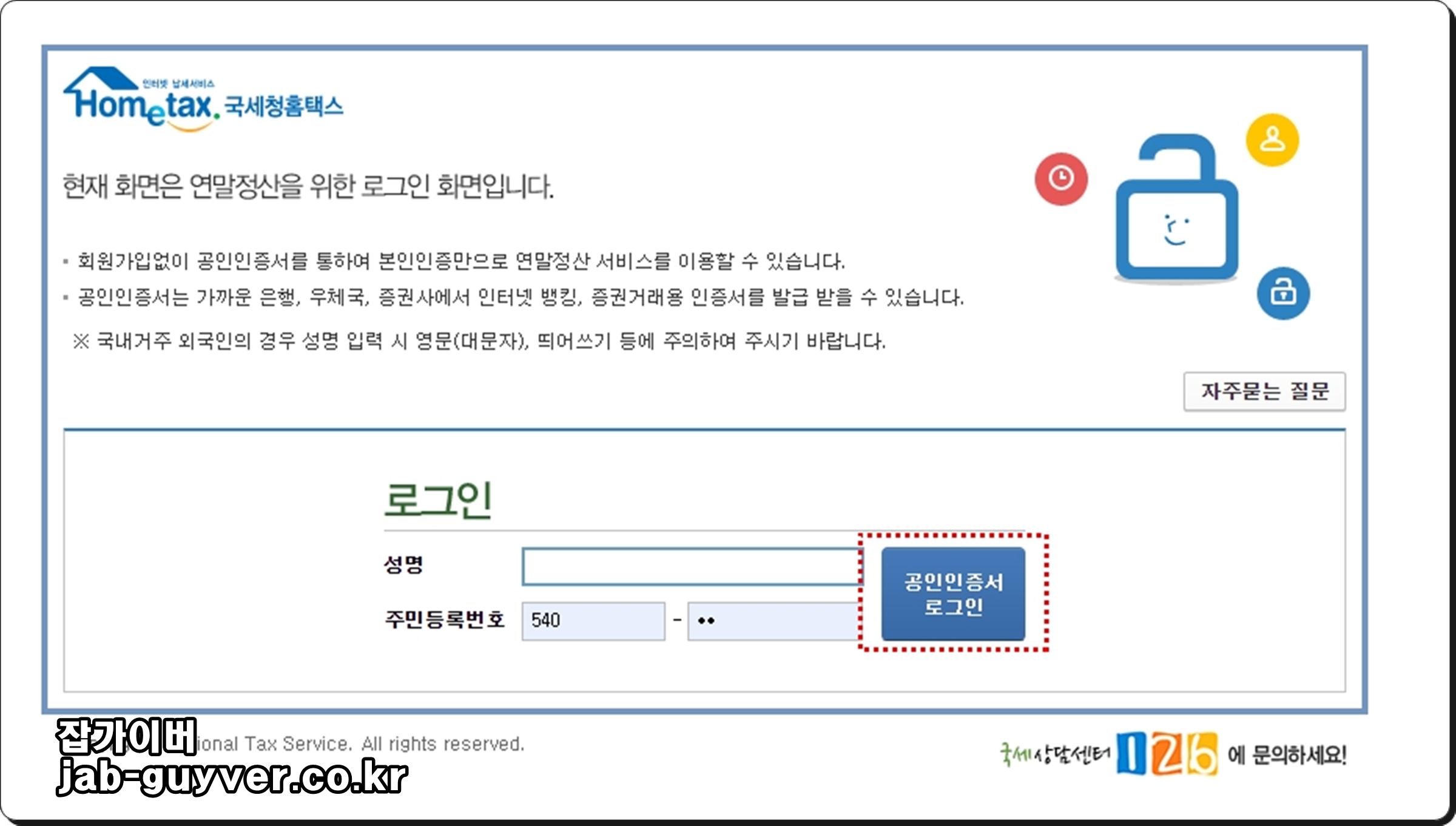 연말정산기간에 국세청 홈택스 홈페이지로 접속합니다.