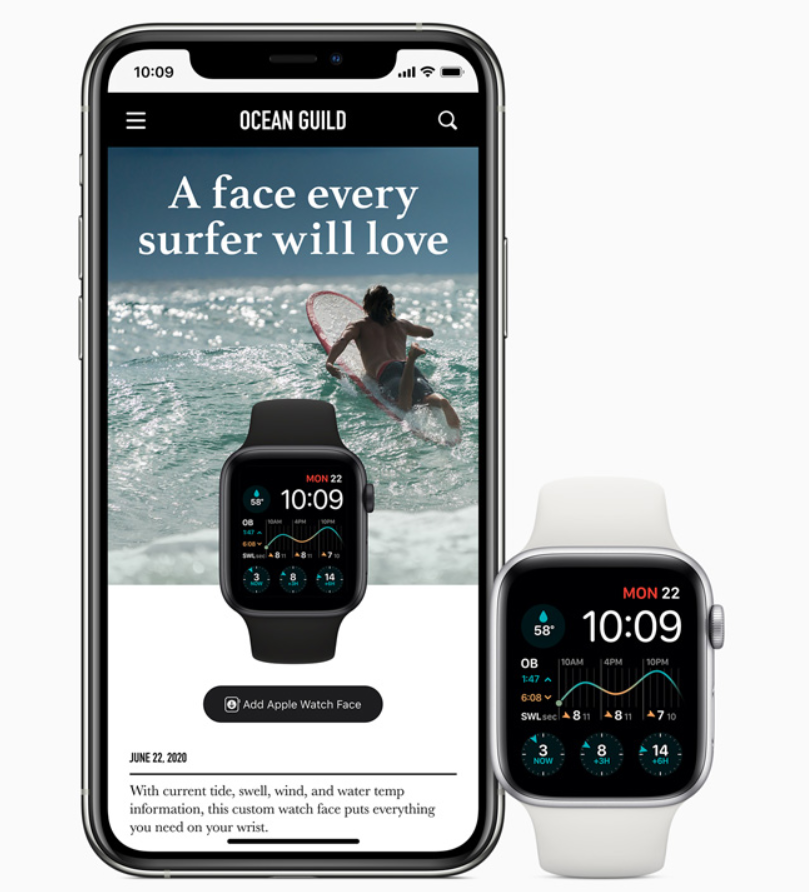 얼굴은 시계 경험의 중심이 되어 고객에게 중요한 정보를 한눈에 제공하고 Apple Watch를 개인화할 수 있는 기능을 제공합니다. watchOS 7은 새로운 부모부터 서핑 애호가, 테니스 선수 또는 사진작가에 이르기까지 모든 활동이나 라이프 스타일에 맞게 시계 모드를 완벽하게 구성할 수 있는 고유 한 조합을 발견하고 공유하는 새로운 방법을 제공합니다. 복잡함을 포함하여 무한하게 사용자 정의하고 개인화된 얼굴은 메시지 또는 메일을 통해 공유할 수 있으며 App Store를 통해 또는 웹 사이트 및 소셜 미디어 채널을 통한 링크에서도 검색할 수 있습니다.