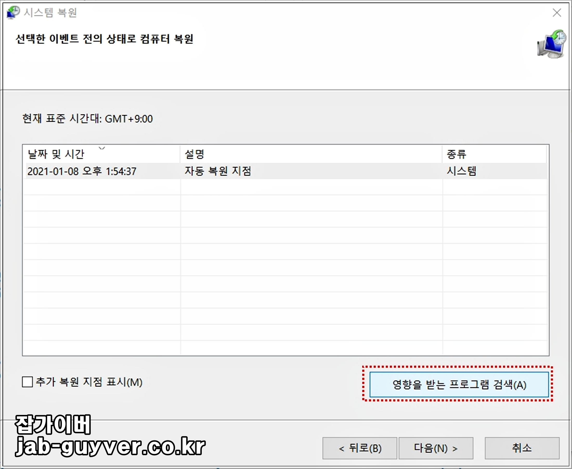 이때 복구를 하게 되면 현재 프로그램중에서 영향을 받는 프로그램을 검색합니다.