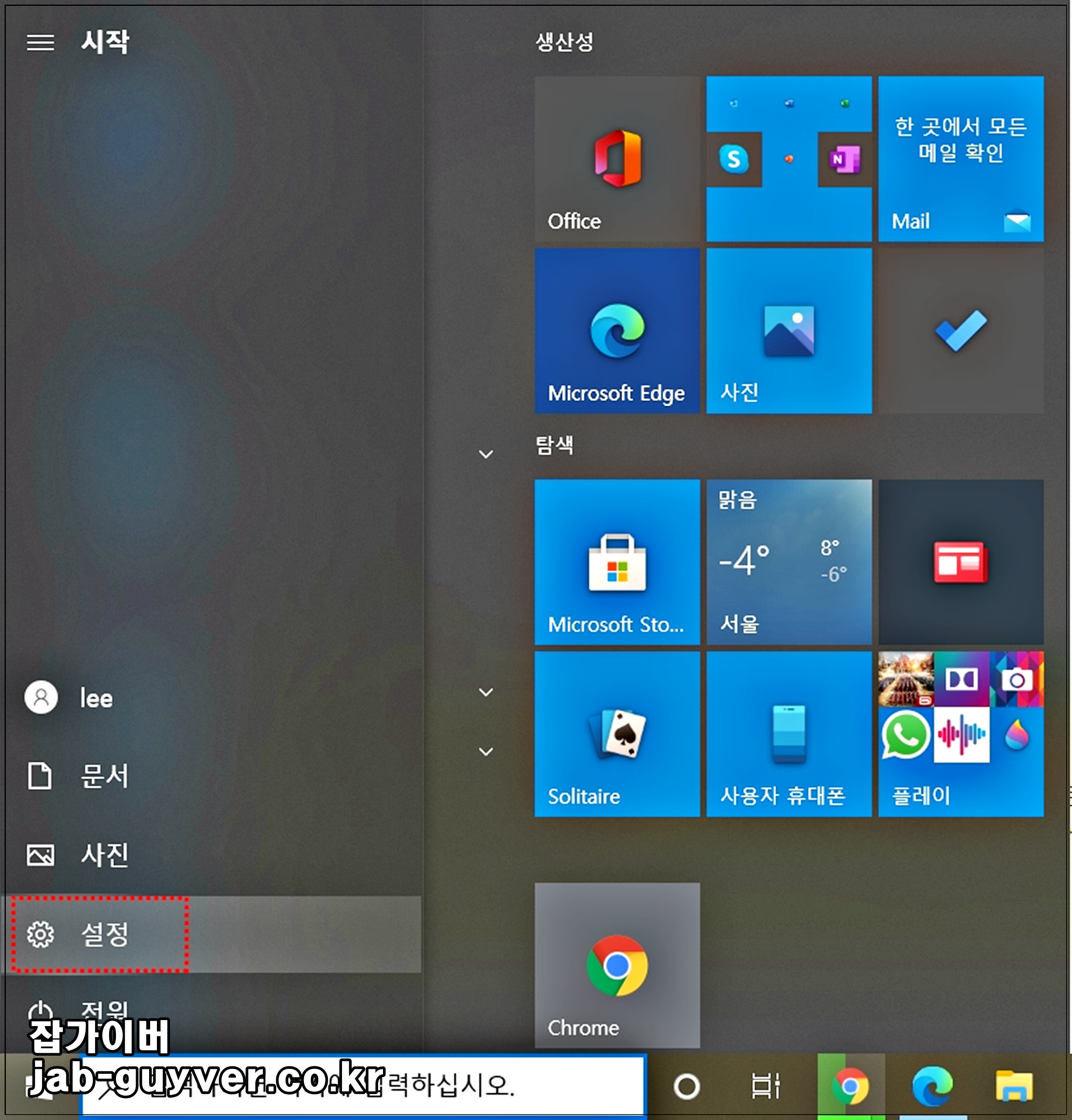 윈도우 로고를 클릭 후 설정으로 들어갑니다.