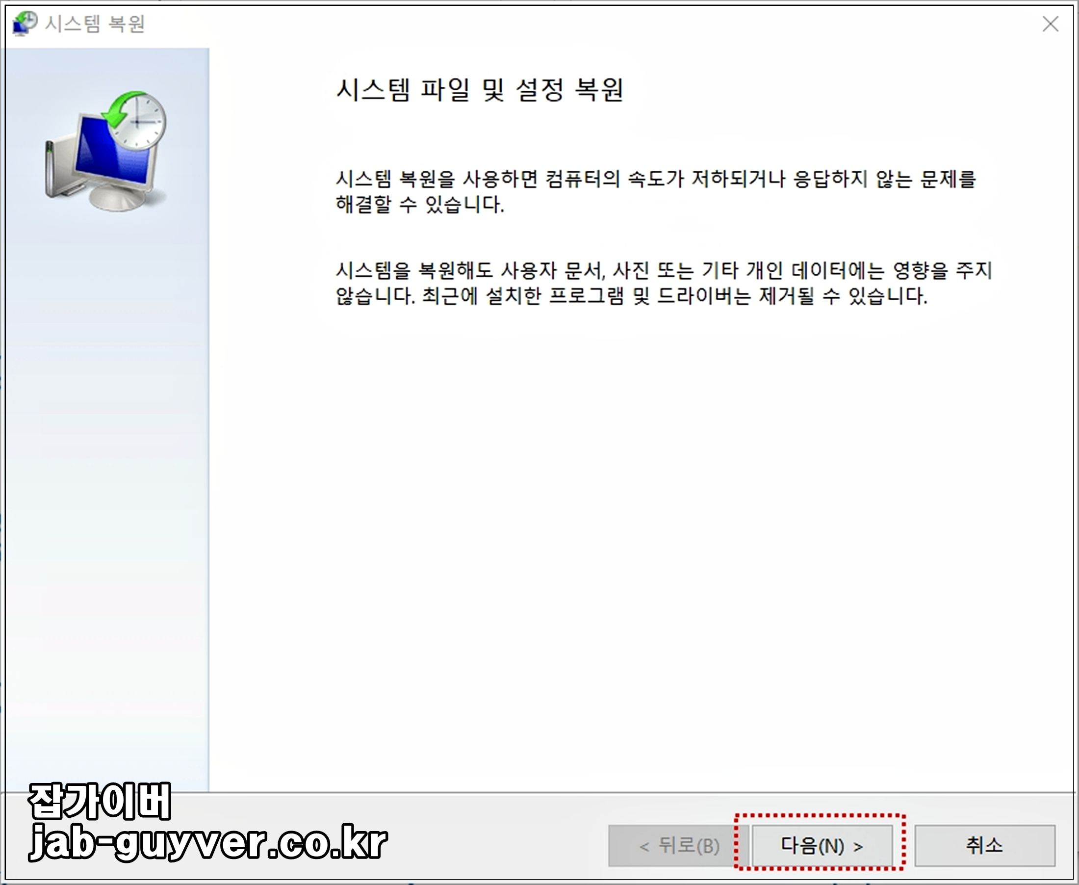 시스템 복원을 사용하면 컴퓨터 속도가 느려지거나 응답하지 않던 문제를 해결 할 수 있습니다.