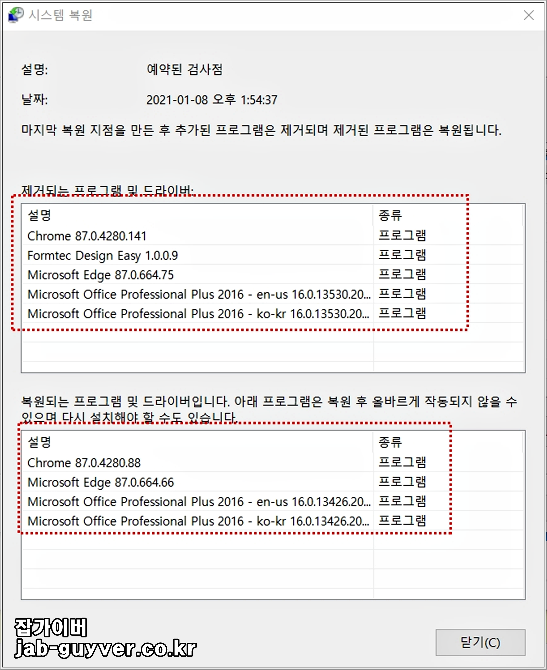 이는 체크했다가 복구 후 프로그램을 재설치하거나 실행을 통해 문제가 되는지 추후 확인하기 위해 메모를 해두느것이 좋습니다.