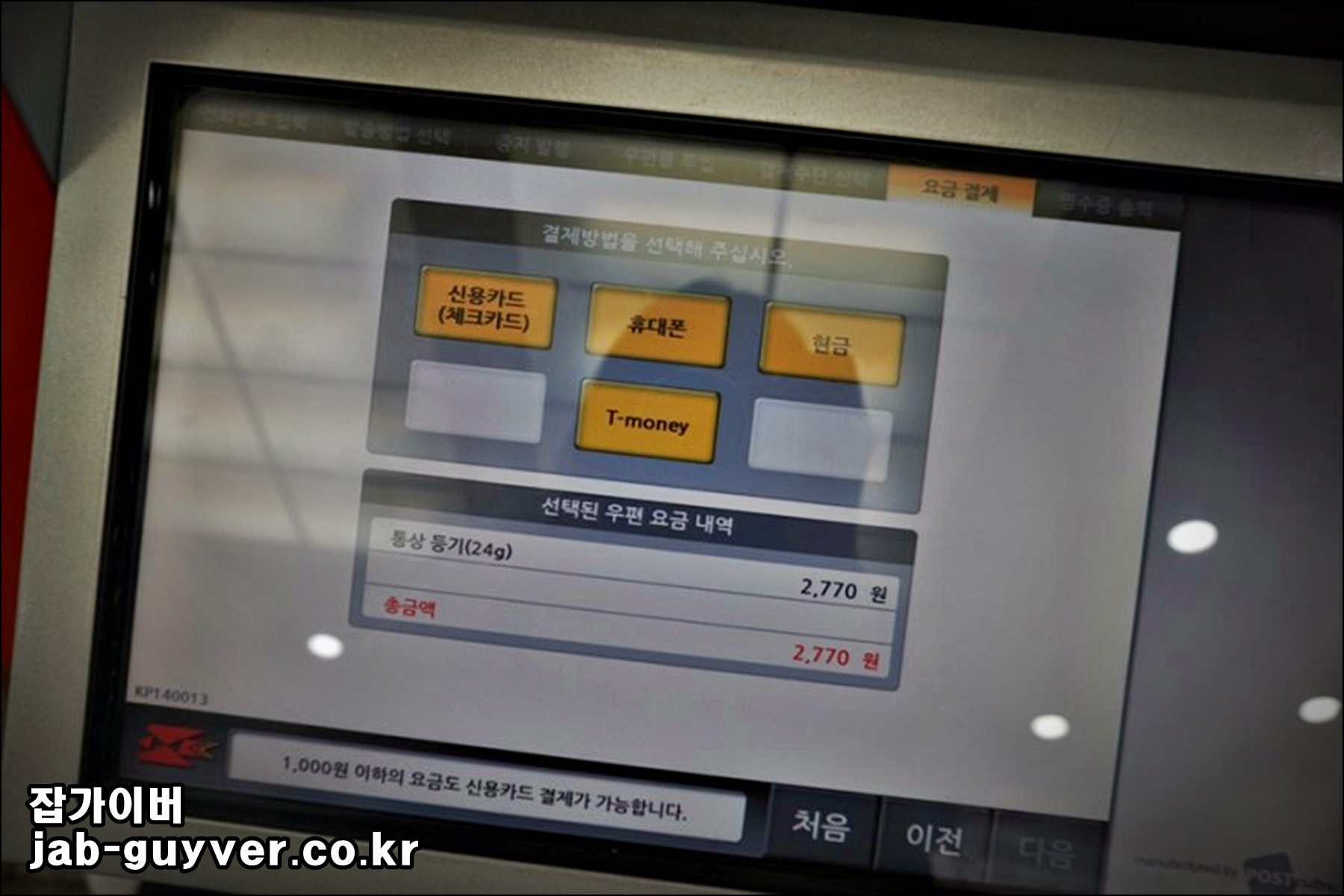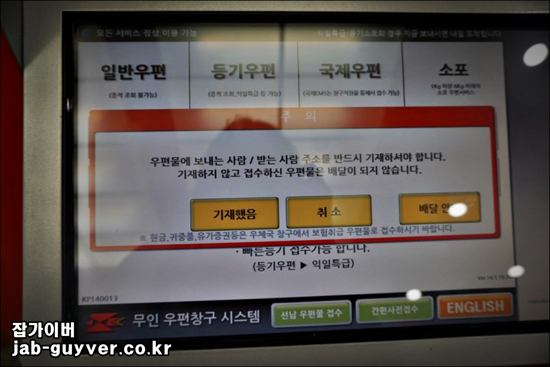우체국에 방문시 입구쪽에 이러한 우편 접수가 가능한 무인 창구가 있습니다.