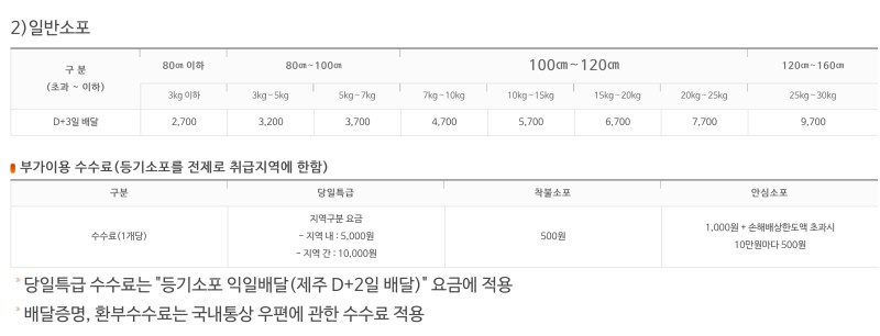 당연히 무겁고 클수록 택배요금이 늘어나며 최대 무게 너무 크거나 무거운 것은 배송 제한에 걸리기 때문에 이것도 잘 확인해야합니다.