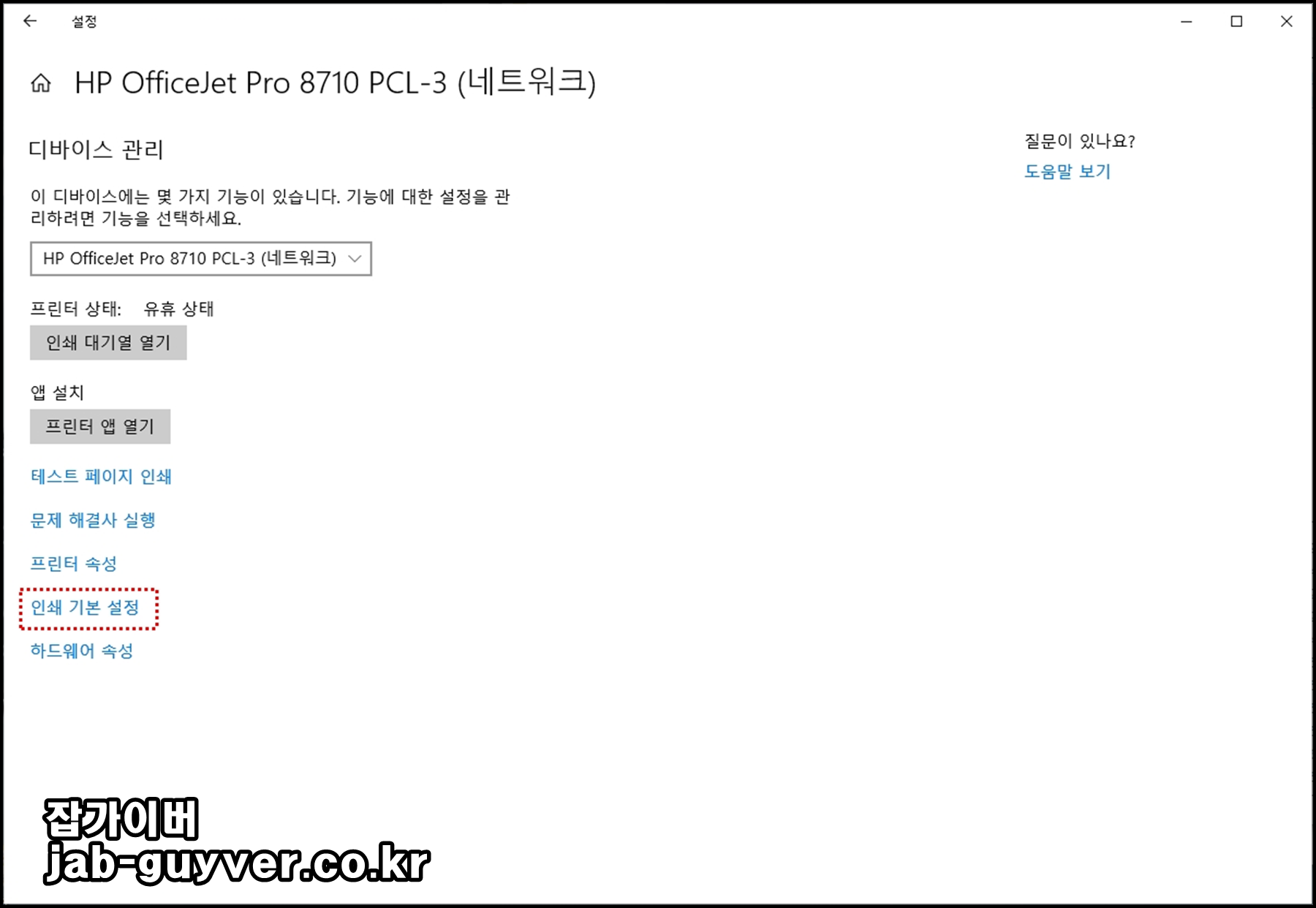 - 인쇄 기본 설정 <- 기본 프린터로 설정해 놓으면 추후 프린터 출력 시 해당 프린터가 기본 설정됩니다.