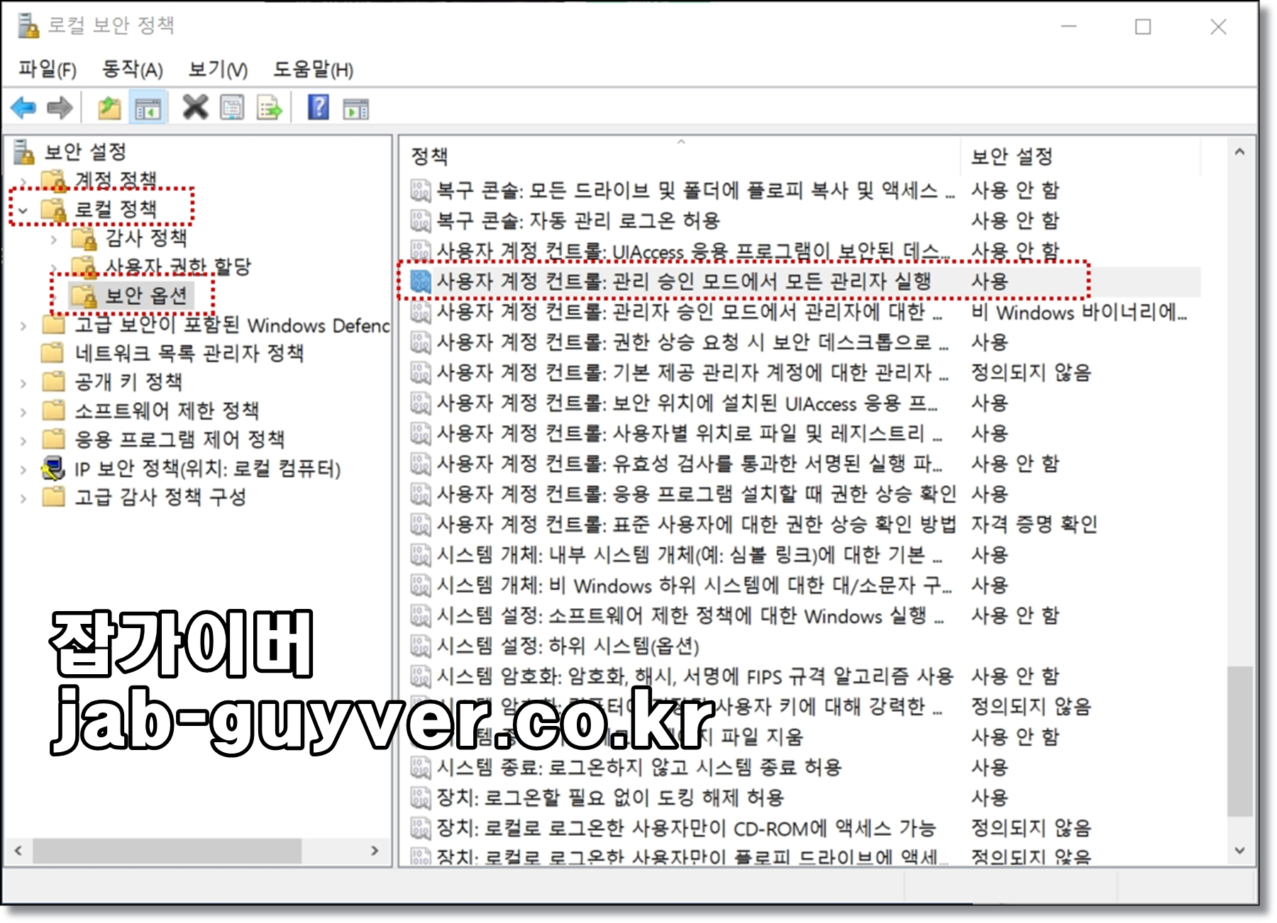 로컬 보안 정책 사용자 계정 컨트롤