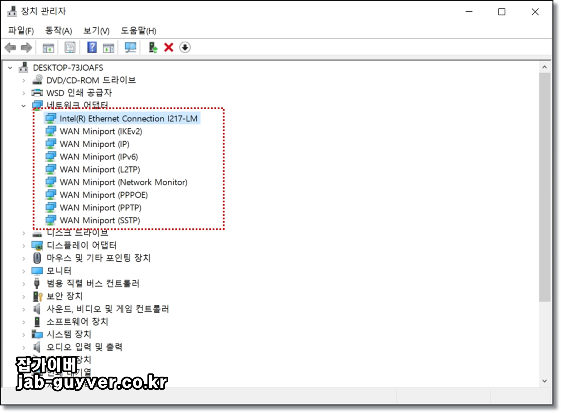네트워크 어댑터 항목에서 자신의 랜카드 모델을 확인합니다.