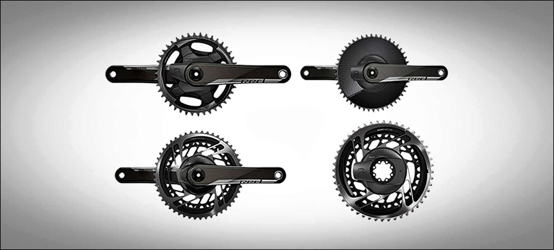 | 50/37, 48/35, 46/33의 옵션이 선택가능한 크랭크세트(좌측)과 한장의 체인링을 사용하는 크랭크세트(중간과 우측). 한장의 체인링을 사용하는 경우 50, 48, 46, 44, 42, 40, 38, 36 의 옵션을 선택할수 있으나 에어로 체인링(우측)의 경우 50과 48 옵션이 지원 |