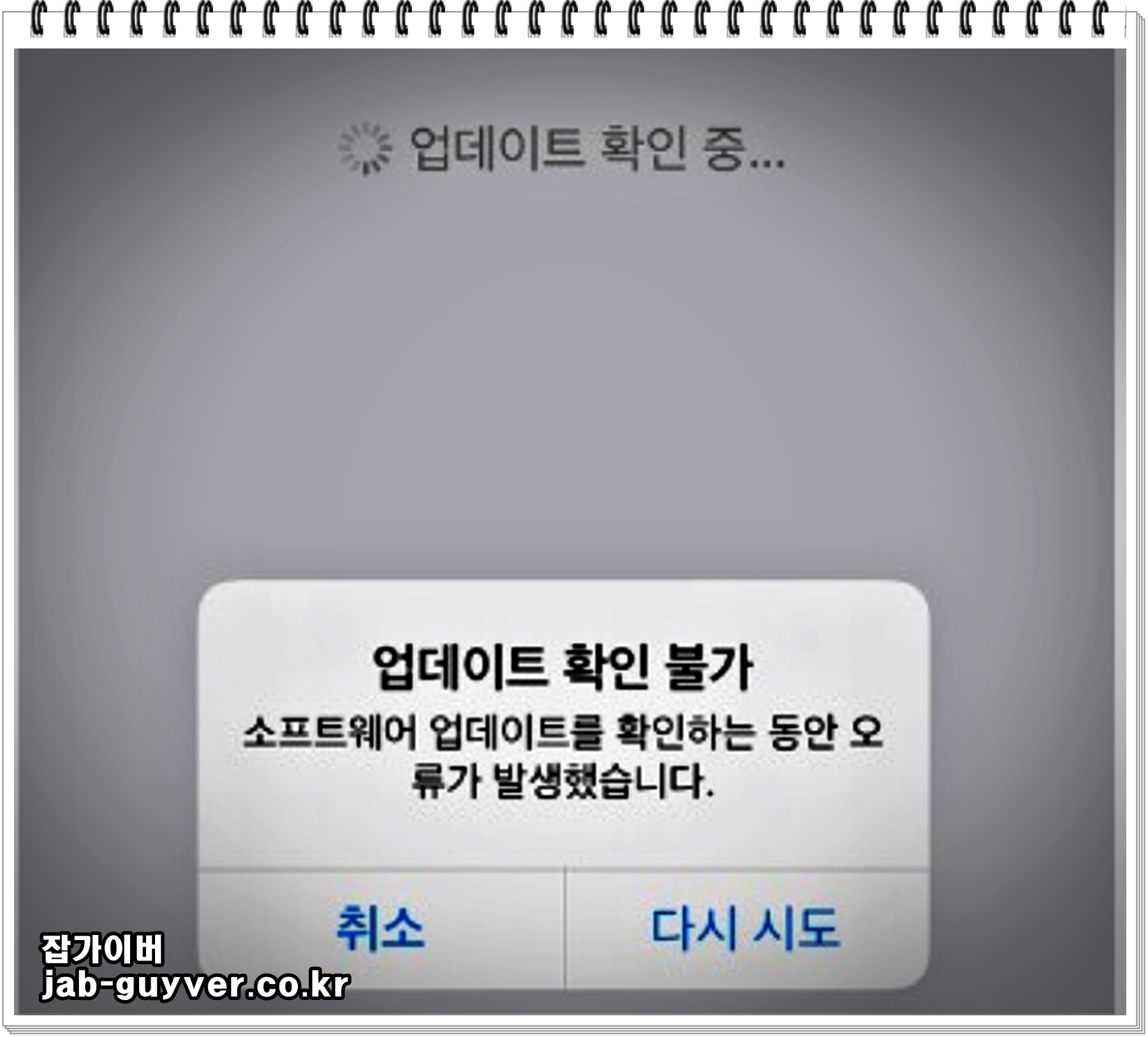 그외 IOS 업데이트시 업데이트 확인불가 오류창이 뜨는경우가 있습니다.