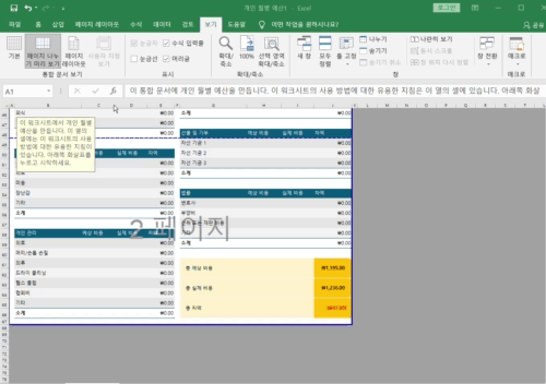 보기 -> 페이지 나누기 미리보기를 선택합니다.