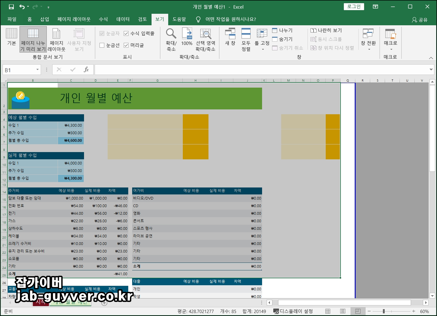 엑셀에는 페이지나누기라는 기능이 있는데 엑셀로 프린터 인쇄를 하는경우 인쇄영역이 잘려 나오느경우가 있습니다.