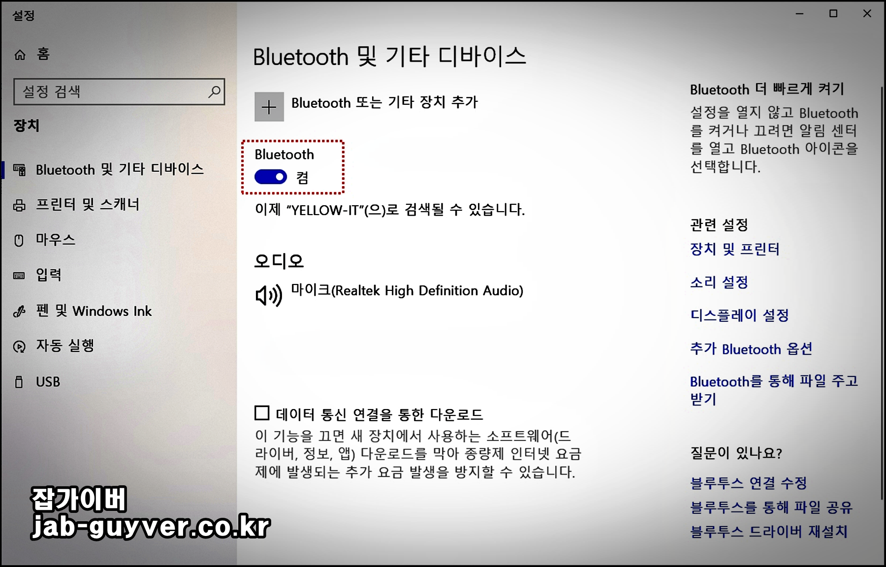 윈도우10 블루투스 디바이스 설치 연결