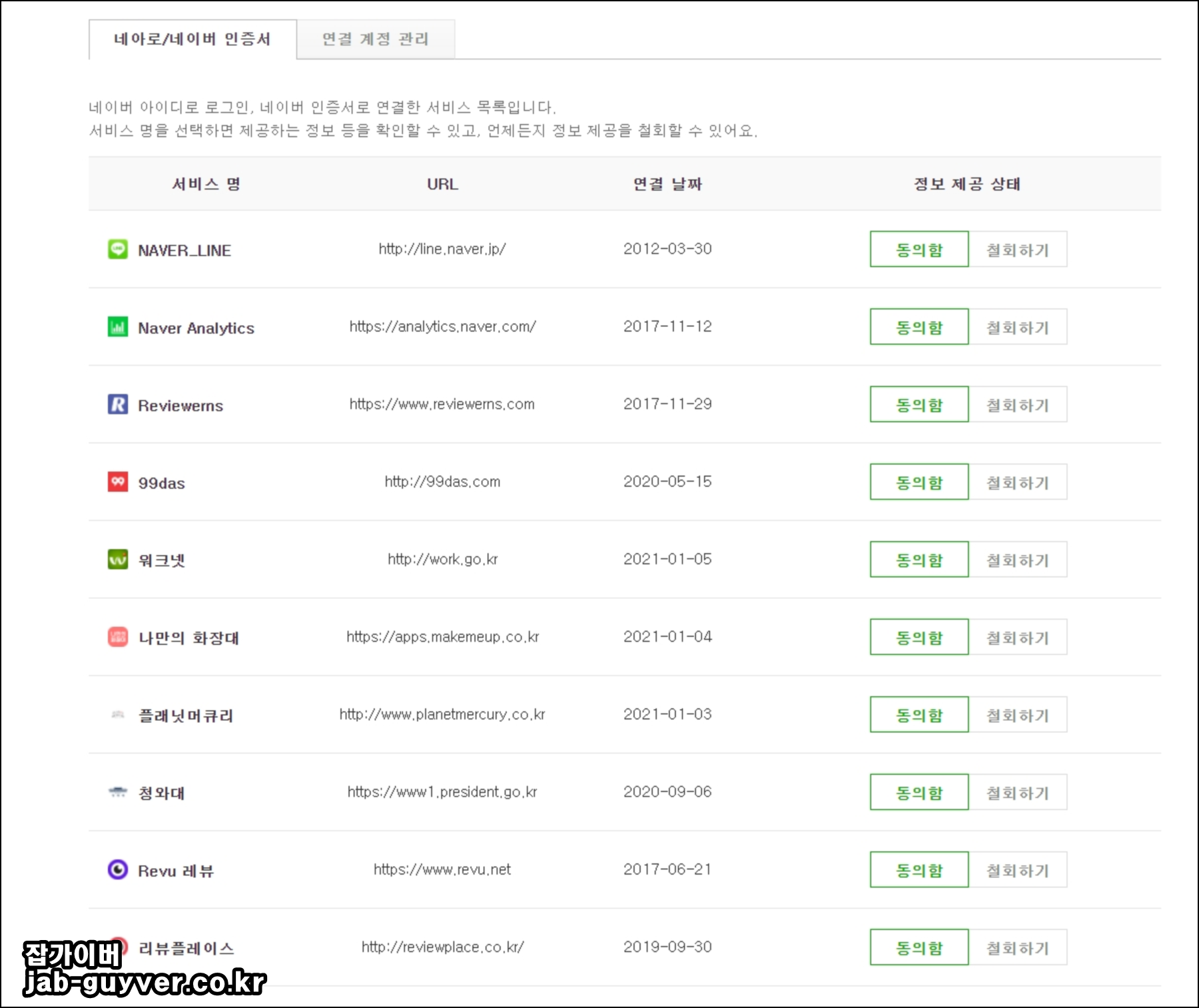 그 외에도 네이버 라인과 네이버 애널리틱스, 워크넷과, 청와대 홈페이지 등도 간편하게 네이버 인증서를 통해 로그인할 수 있습니다.