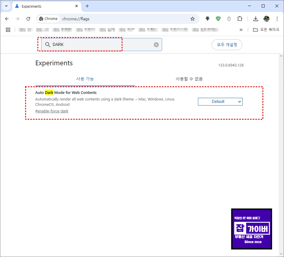 이럴 때는 다크모드 확장 프로그램(예: Dark Reader)을 설치하거나 chrome://flags에서 자동 다크모드를 활성화하면 대부분의 사이트에서 적용됩니다.