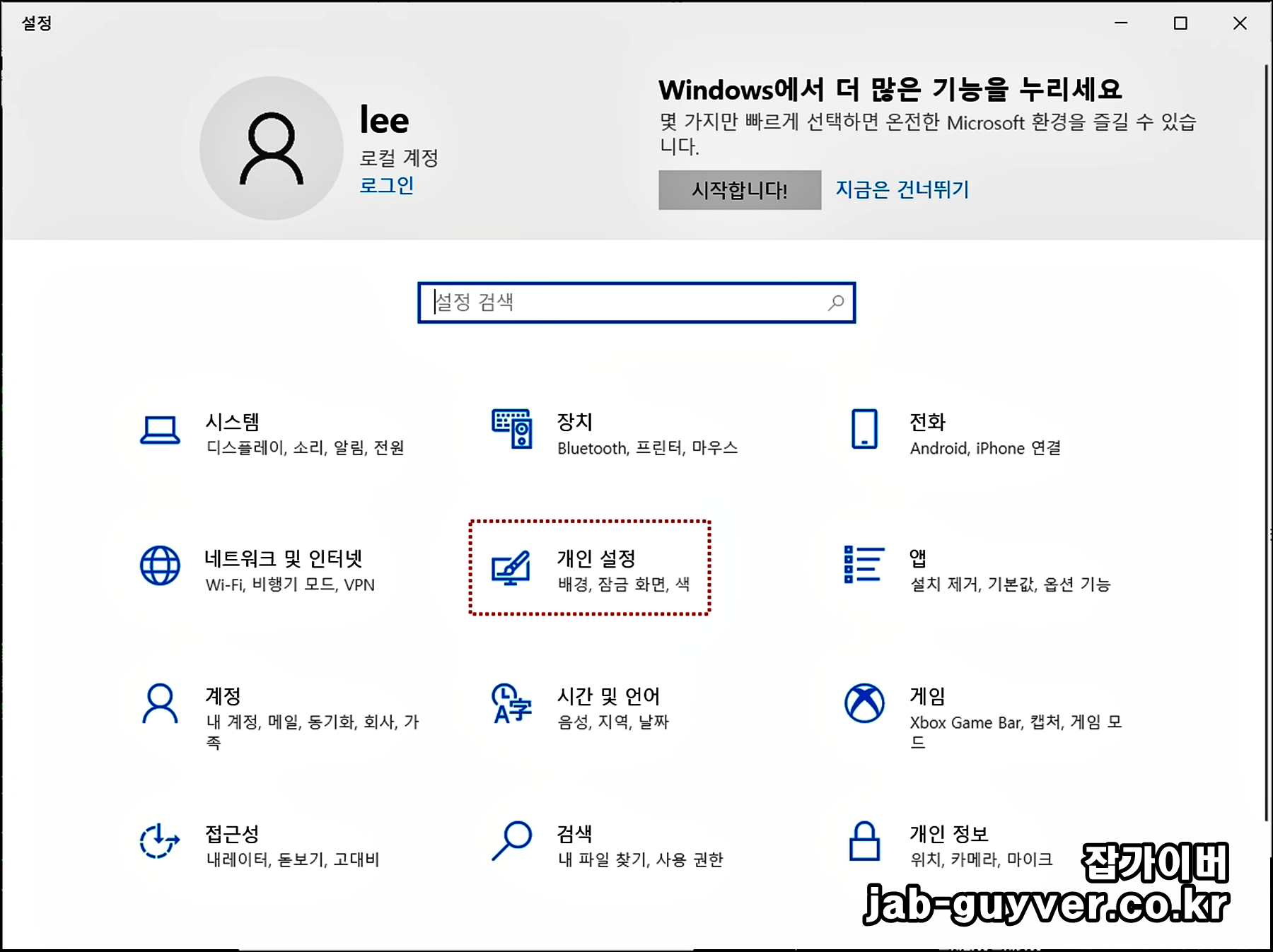 개인설정을 통해 배경 및 잠금화면과 색상을 변경할 수 있습니다.