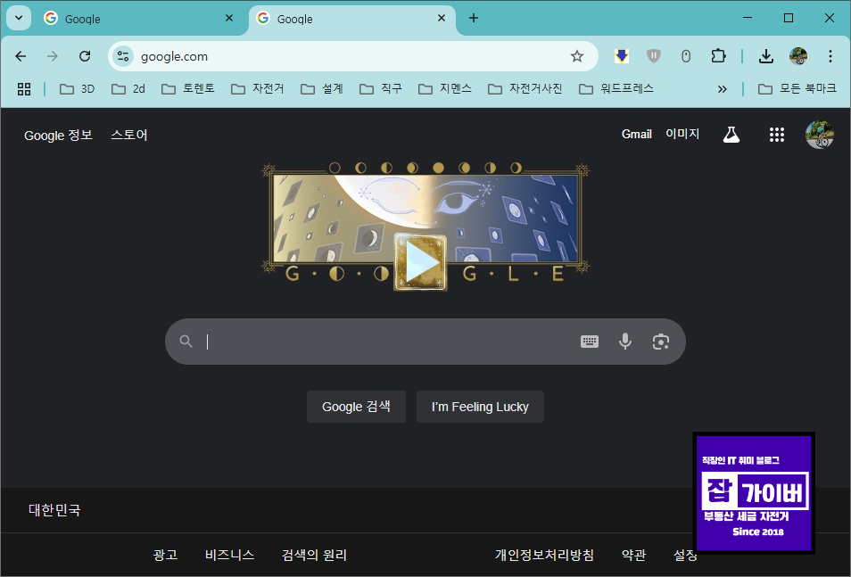 윈도우 화면이 흰색과 어두운색으로 원하는 스타일로 사용할 수 있으며 이 상태로 인터넷에 접속하면 구글이나 네이버 화면등이 다크모드가 적용됩니다.