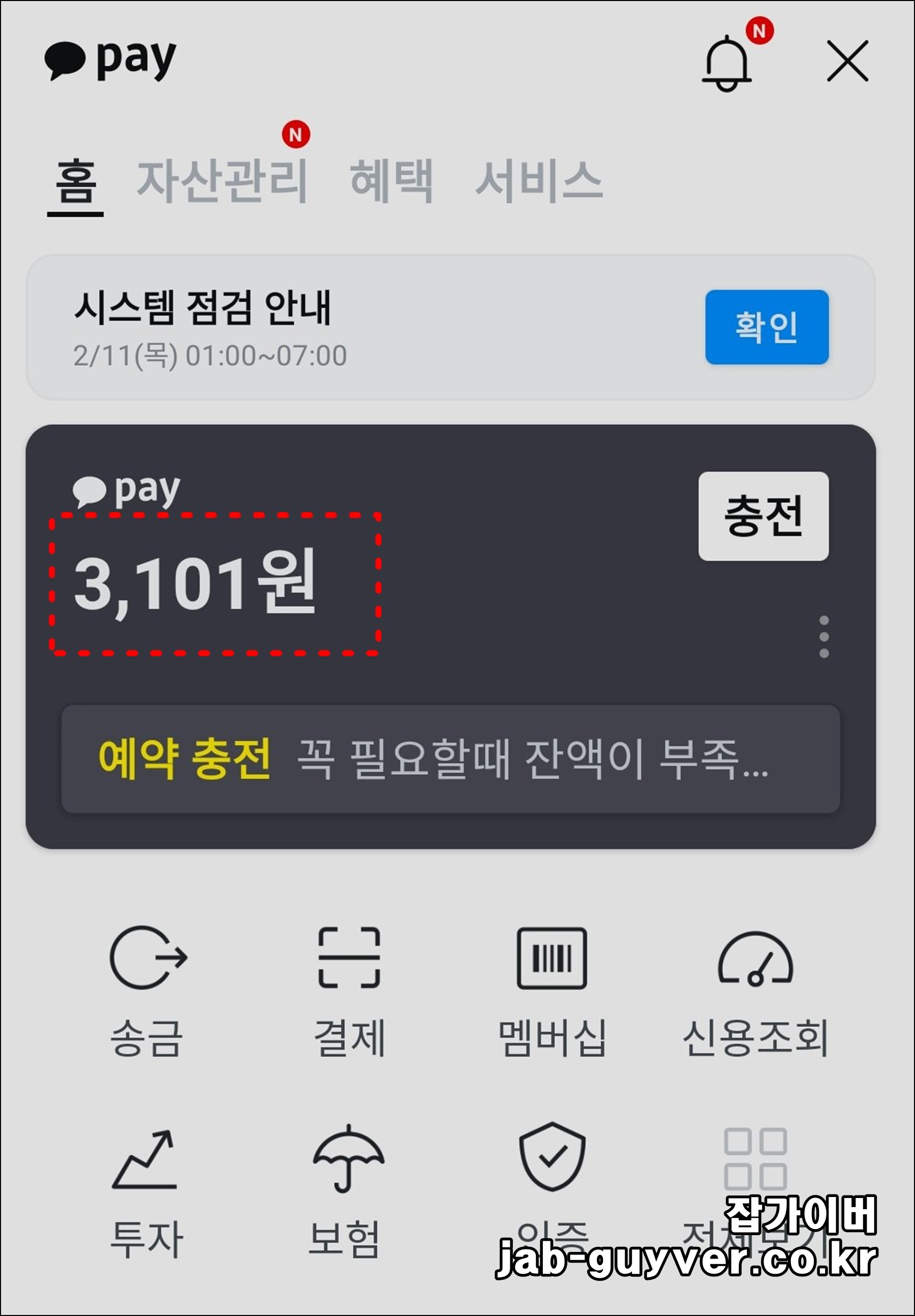 - 카카오페이 계좌 연결 후 충전 및 출금이 가능