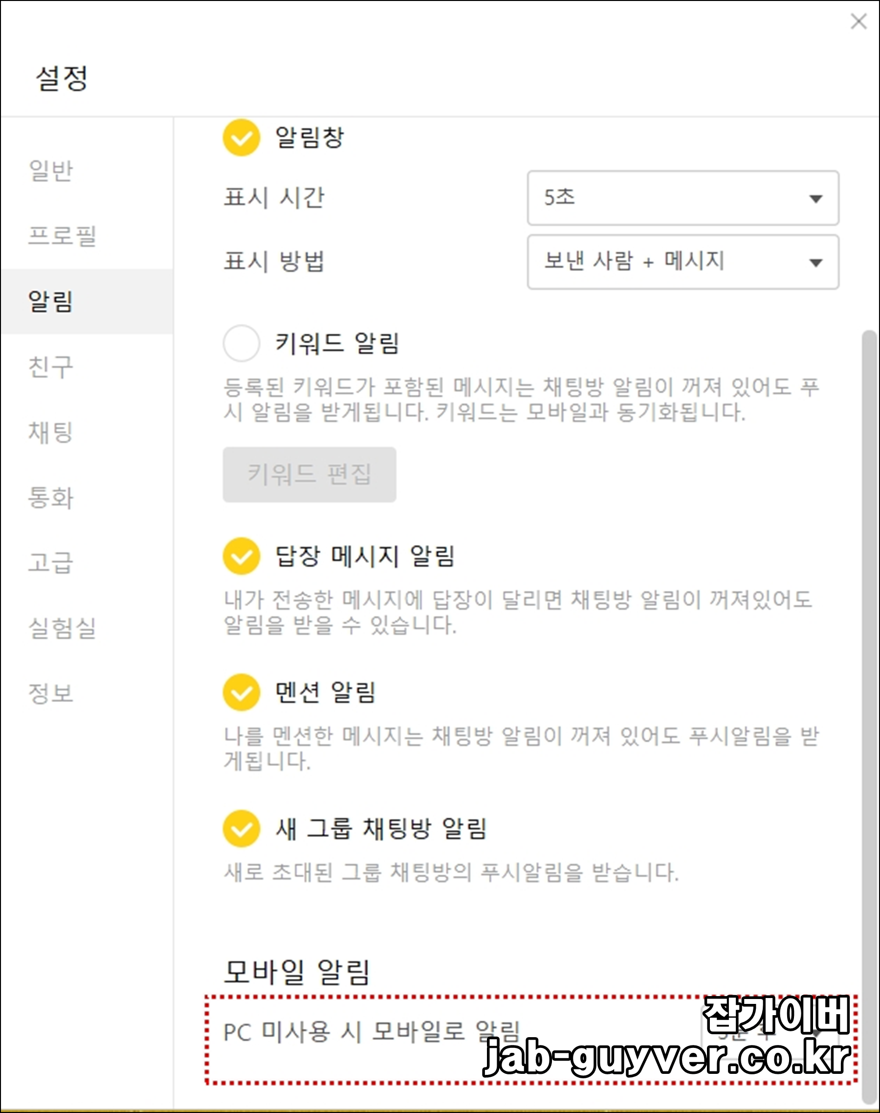 그외 PC인증 후에는 설정값이 초기화 되니 모바일 알림에서 PC 미사용시 모바일 알림을 설정을 함께 해주느것이 좋습니다.