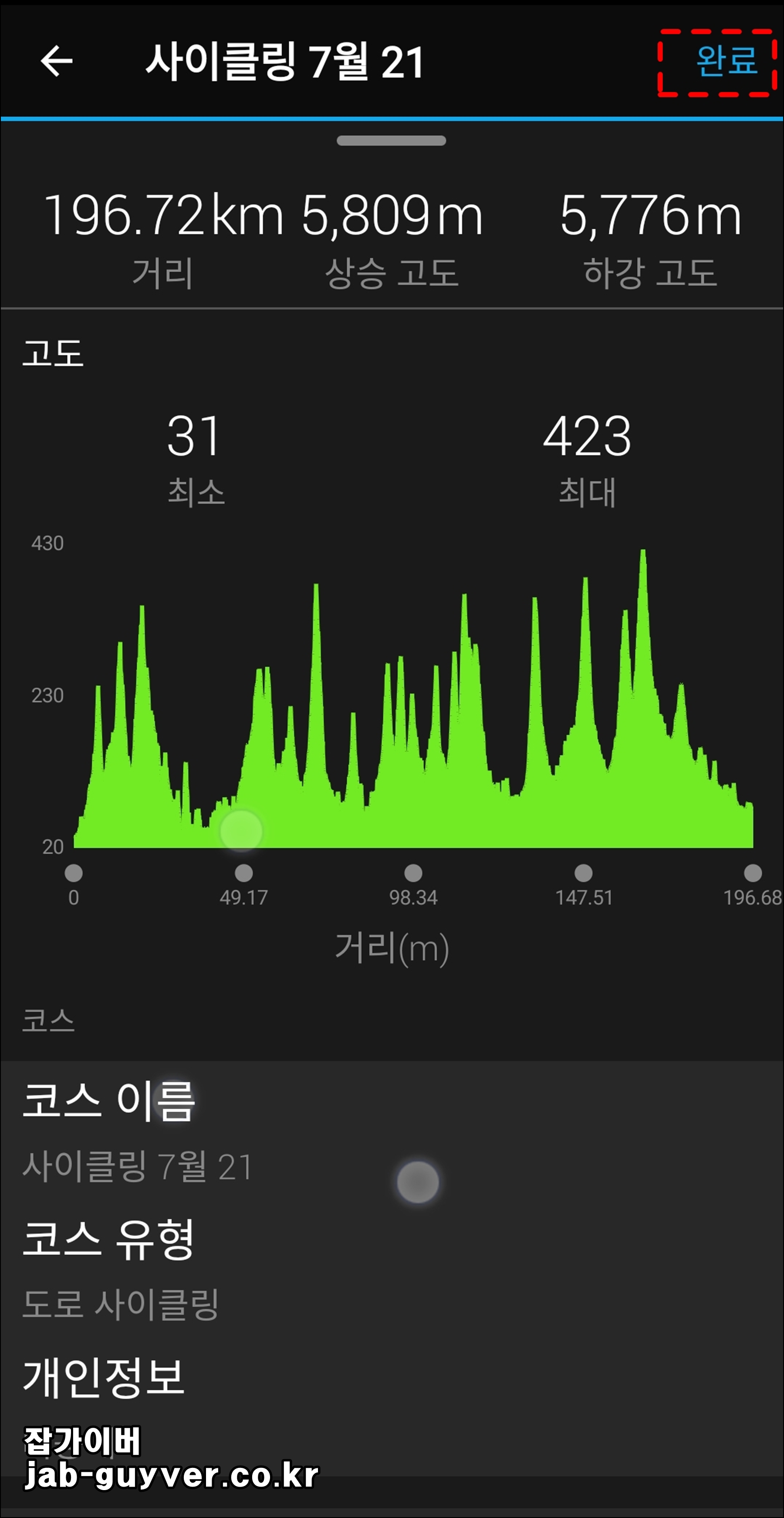 완료 후 해당 지도맵이 사이클링 7월 21일인것을 필요하다면 맵이름을 편집합니다.