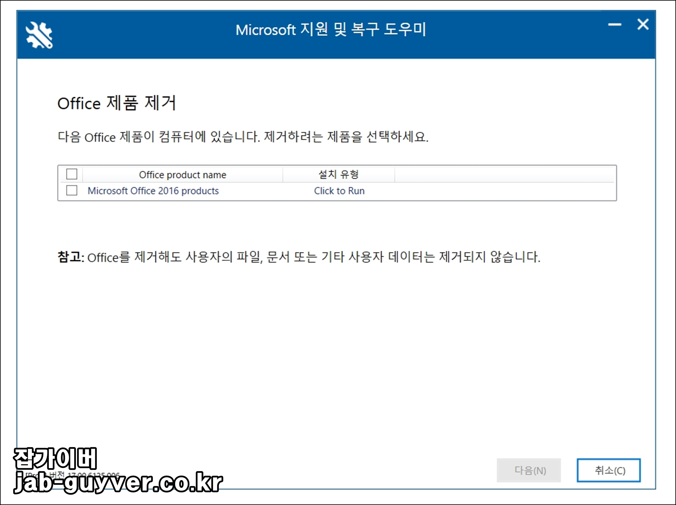 윈도우의 프로그램 추가/제거로 지운 뒤 재설치를 했는데도 이상 증상이 반복된다면, 마이크로소프트에서 제공하는 오피스 제거 도구를 먼저 돌리는 쪽이 확실합니다.