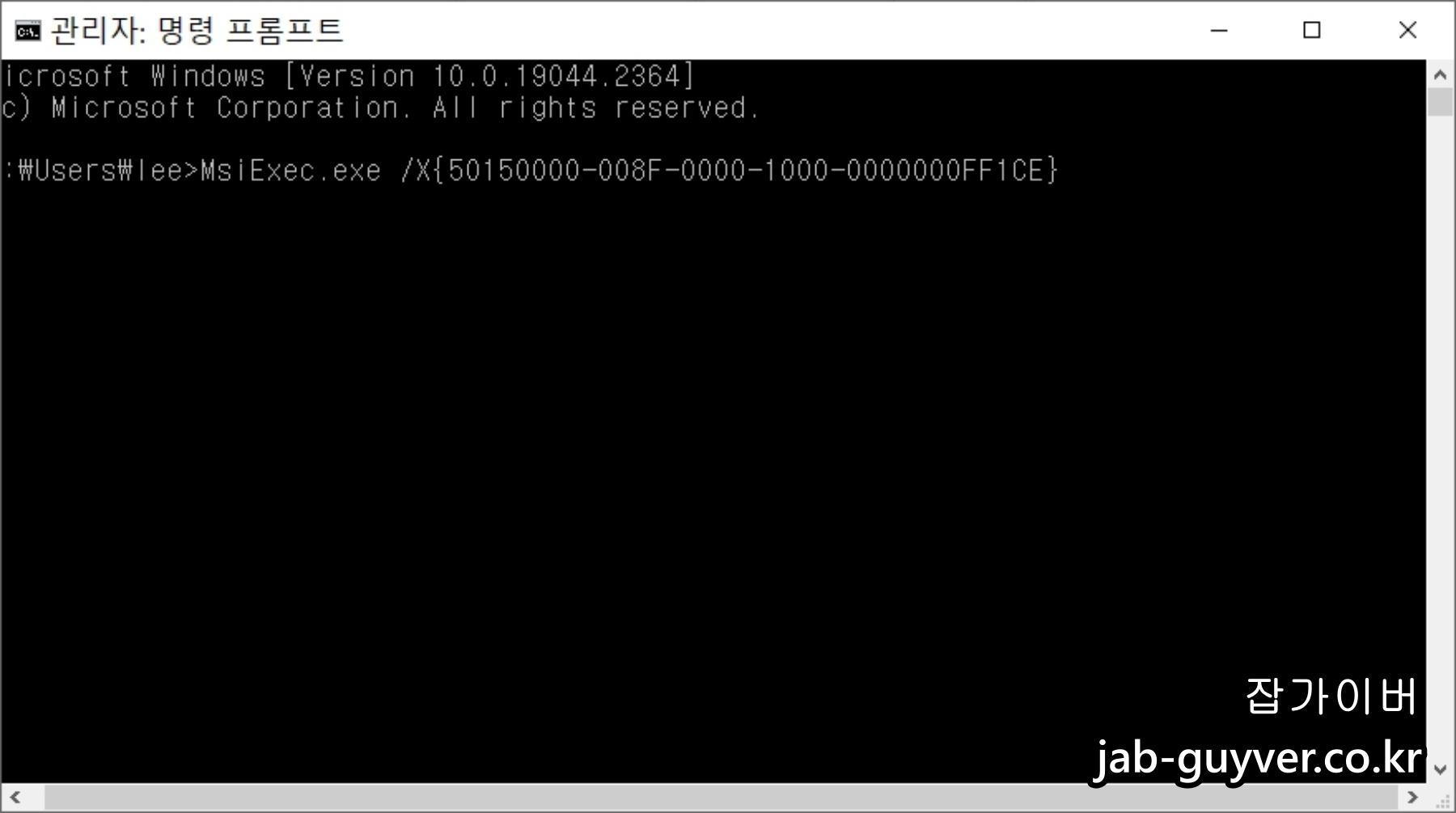 MsiExec.exe /X{90160000-008F-0000-1000-0000000FF1CE} (x64 운영체제에서 x86 Office 2016 실행중인 경우)