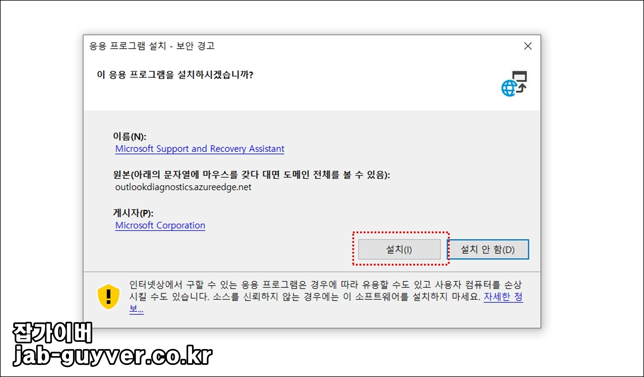 Microsoft Support And Recovery Assistant가 추가로 설치되어야 합니다.