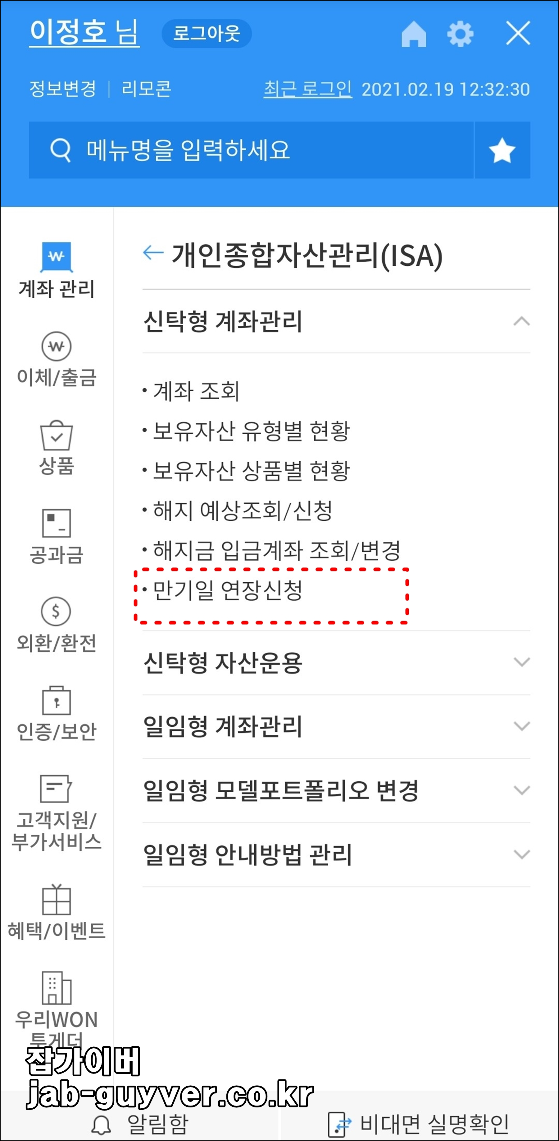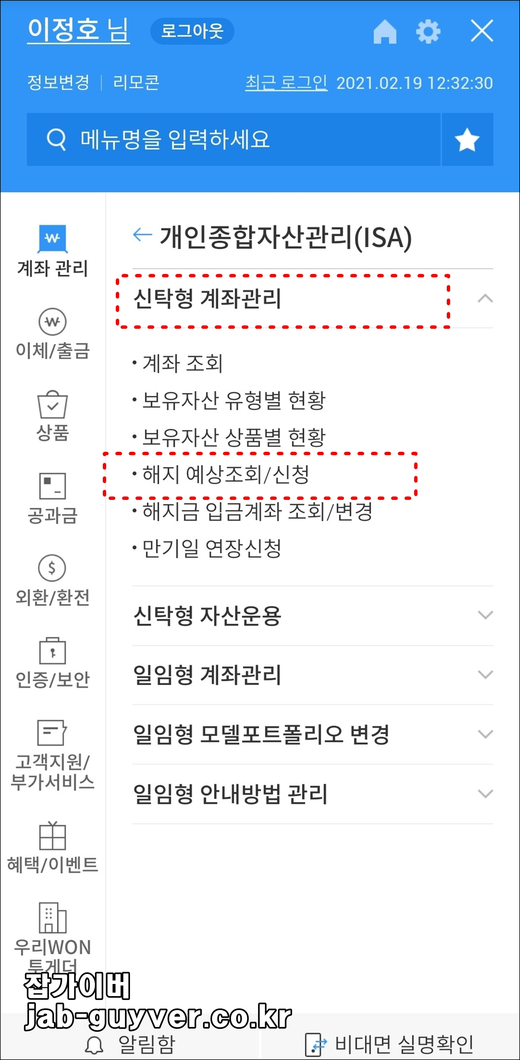 우리은행 개인종합 자산계좌 이체 해지 및 연장 Q&A