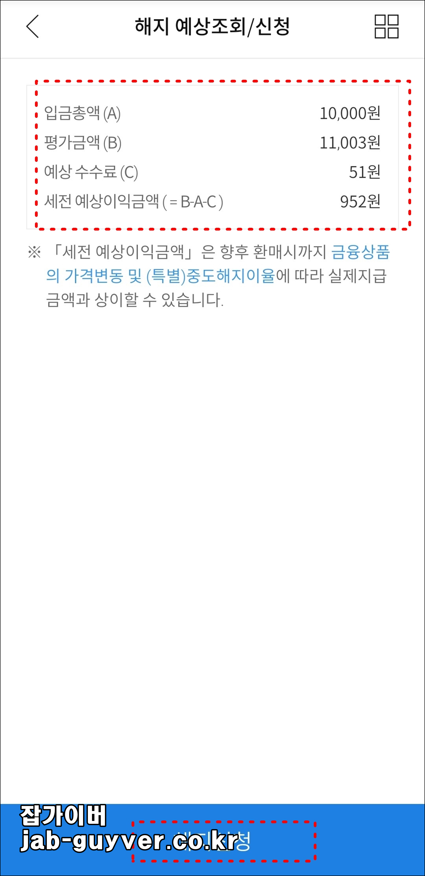 ⑤ 해지금이 필요한 특정일자가 있을 경우, 일정에 맞게 미리 해지 신청을 하시기 바랍니다.