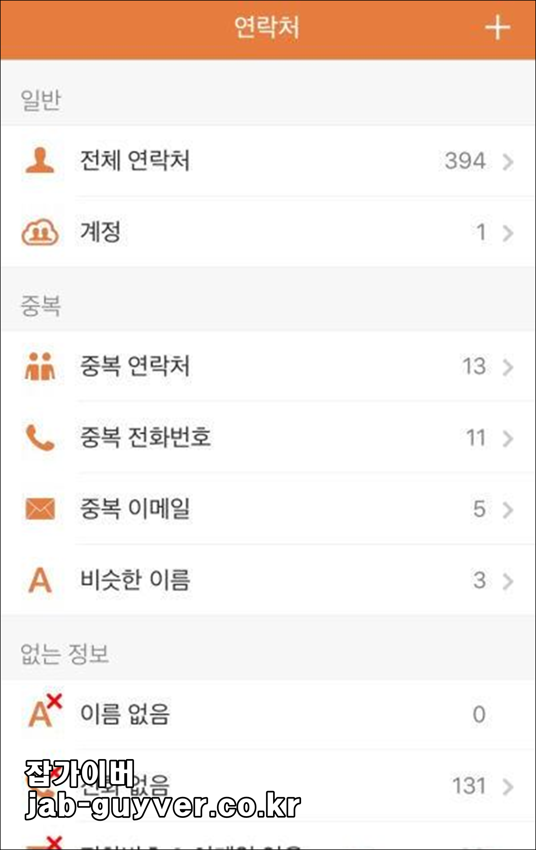 이렇게 이빨빠진 연락처를 통합하거나 이름없이 등록된 연락처등을 확인해서 수정하거나 삭제하는것이 가능합니다.