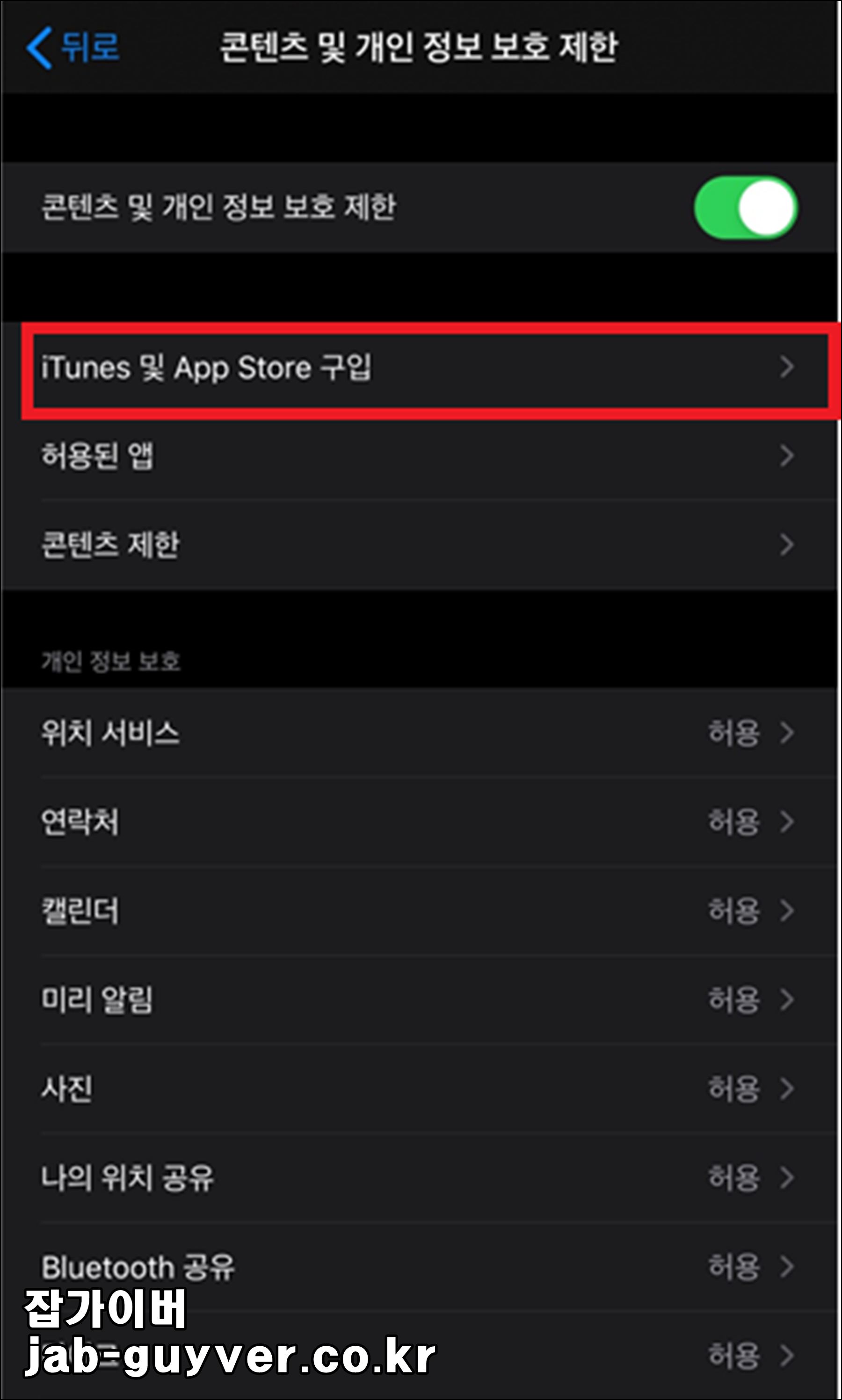 아이폰 유료결제 차단 iOS 앱 구입 설정