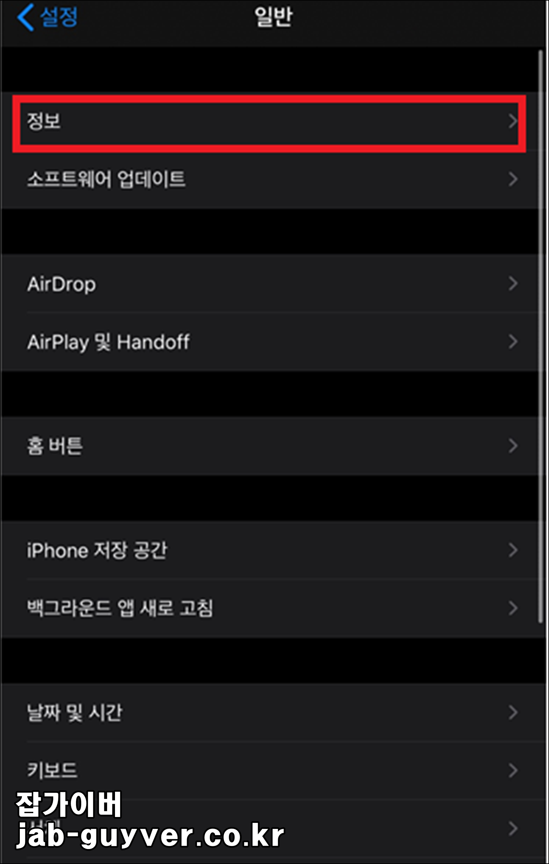 이럴 경우 아이폰 설정에서 ‘일반’ -> ‘정보’를 통해 IMEI 번호를 확인할 수 있습니다.