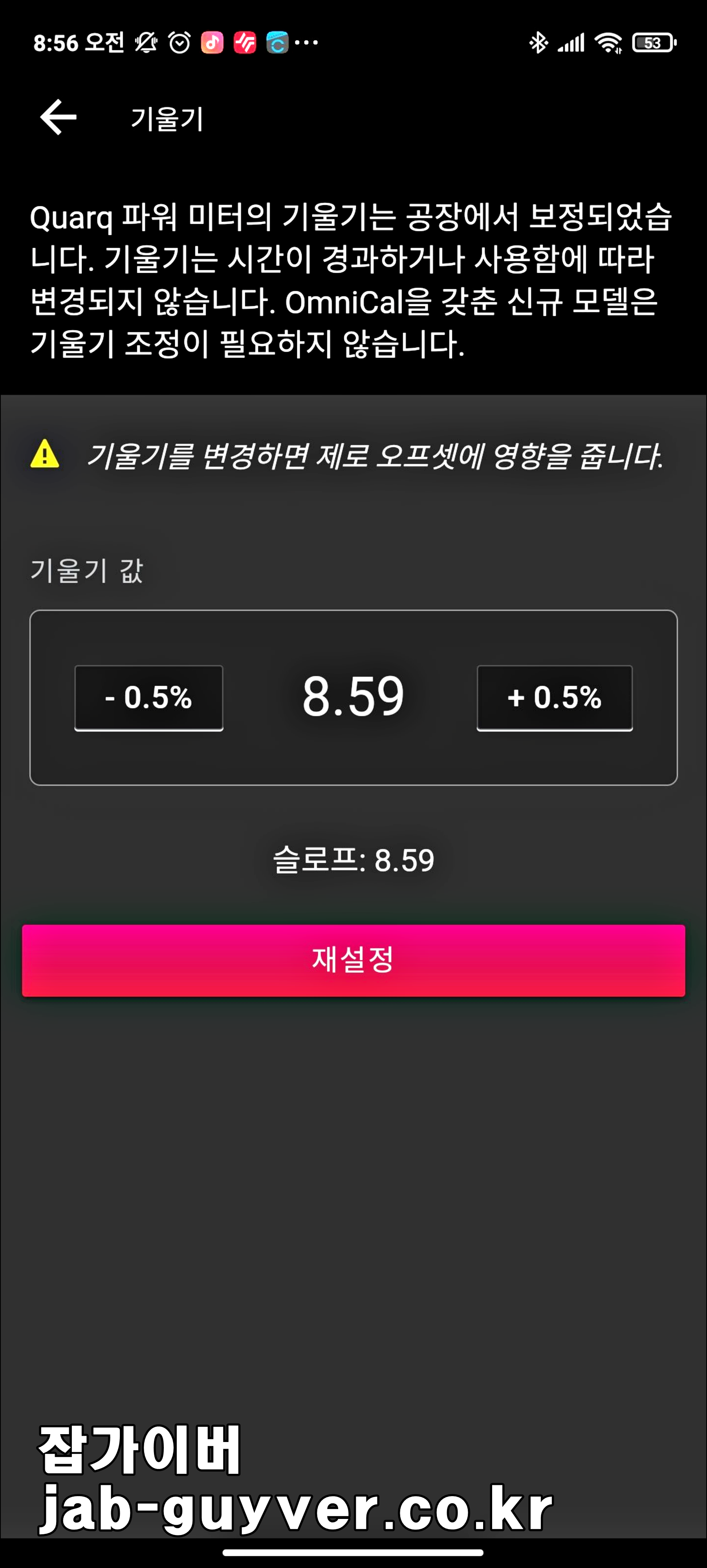 쿼크 파워미터에서 캘리브레이션 기울기는 자동으로 보정되여 기울기는 시간이 경과하거나 사용에 따라 변경되지 않기 때문에 OmniCal을 탑재된 신규 파워미터는 기울기 조정이 별도로 필요없습니다.