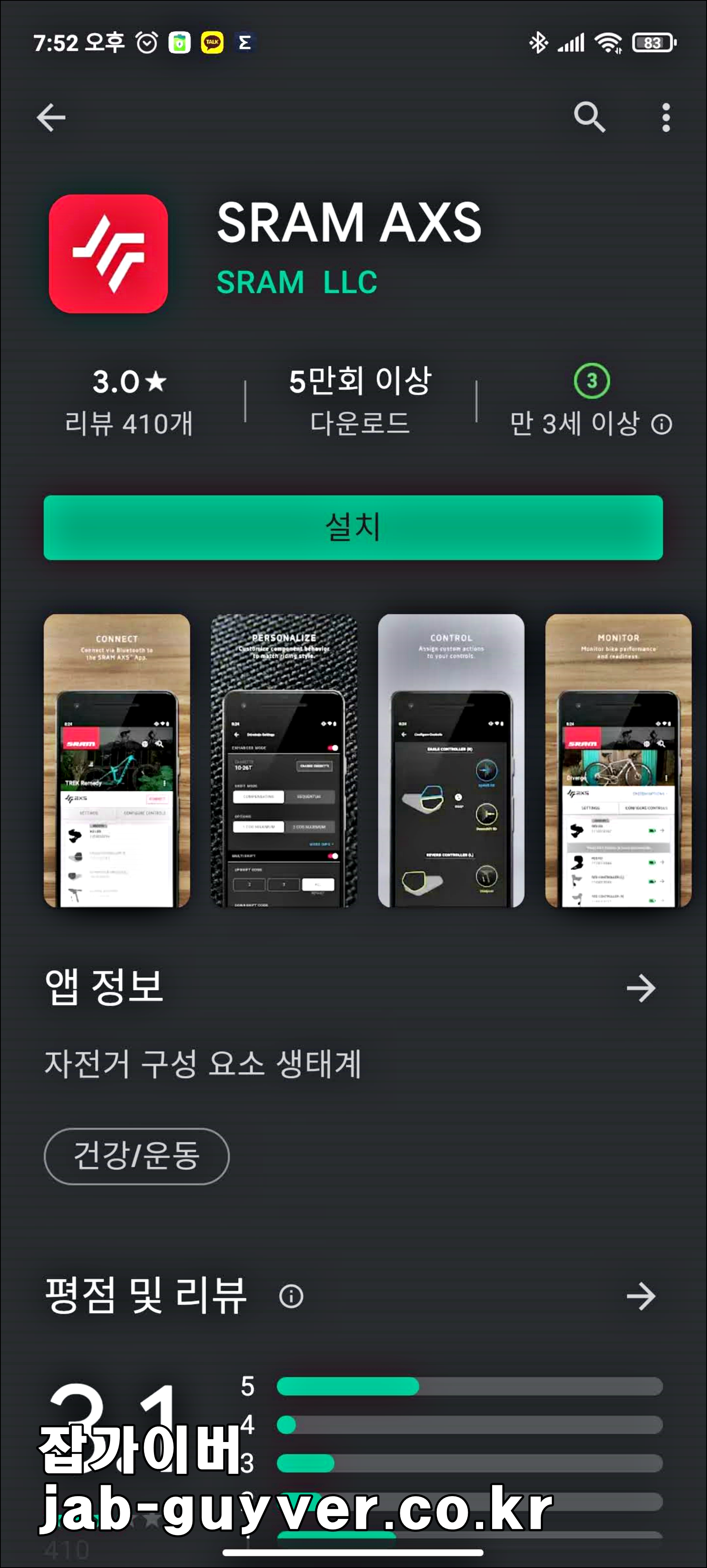 기본적으로 스램 AXS 쿼크 파워미터를 구입했다면 안드로이드 및 아이폰 기준 SRAM AXS 앱을 설치합니다.