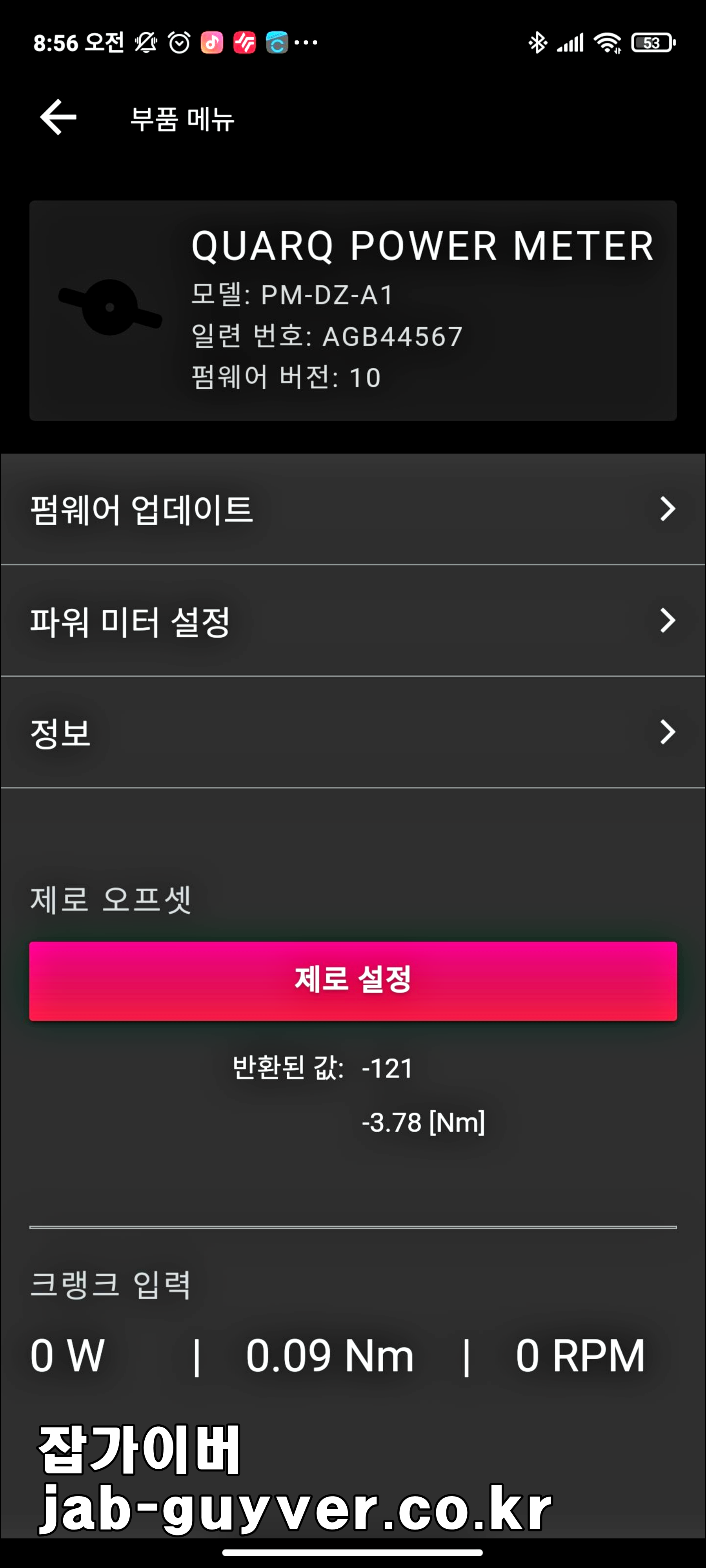 해당앺을 통해 가민없이도 실시간으로 크랭크에 가해지는 파워w와 뉴턴 "Nm"을 확인할 수 있습니다.