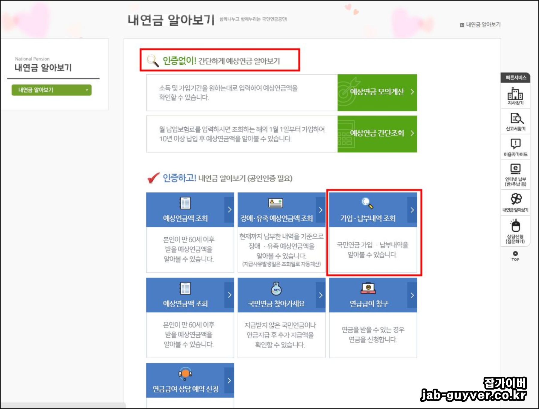 - 개인의 납부 내역과 예상 연금액을 확인할 수 있습니다.