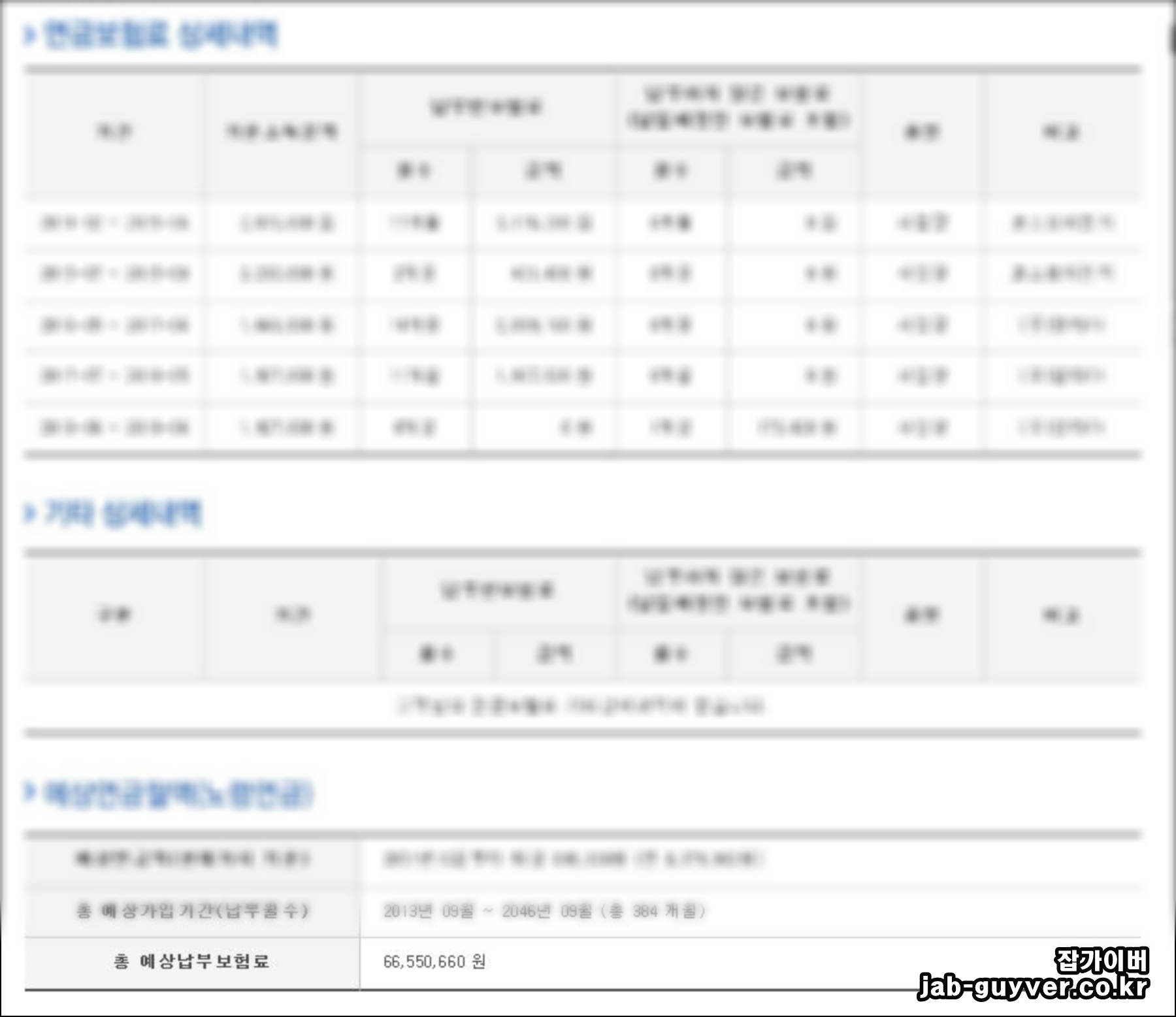 가입기간 | 평균연봉 | 월평균 소득액 | 연금보험료 |