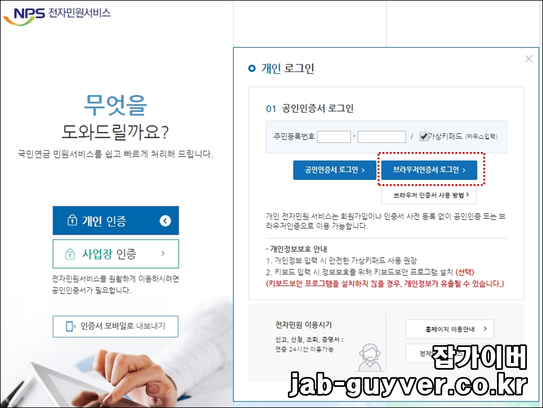 NPS 전자민원 -> 가입자증명서 발급 (구 가입자증명서 재발급)