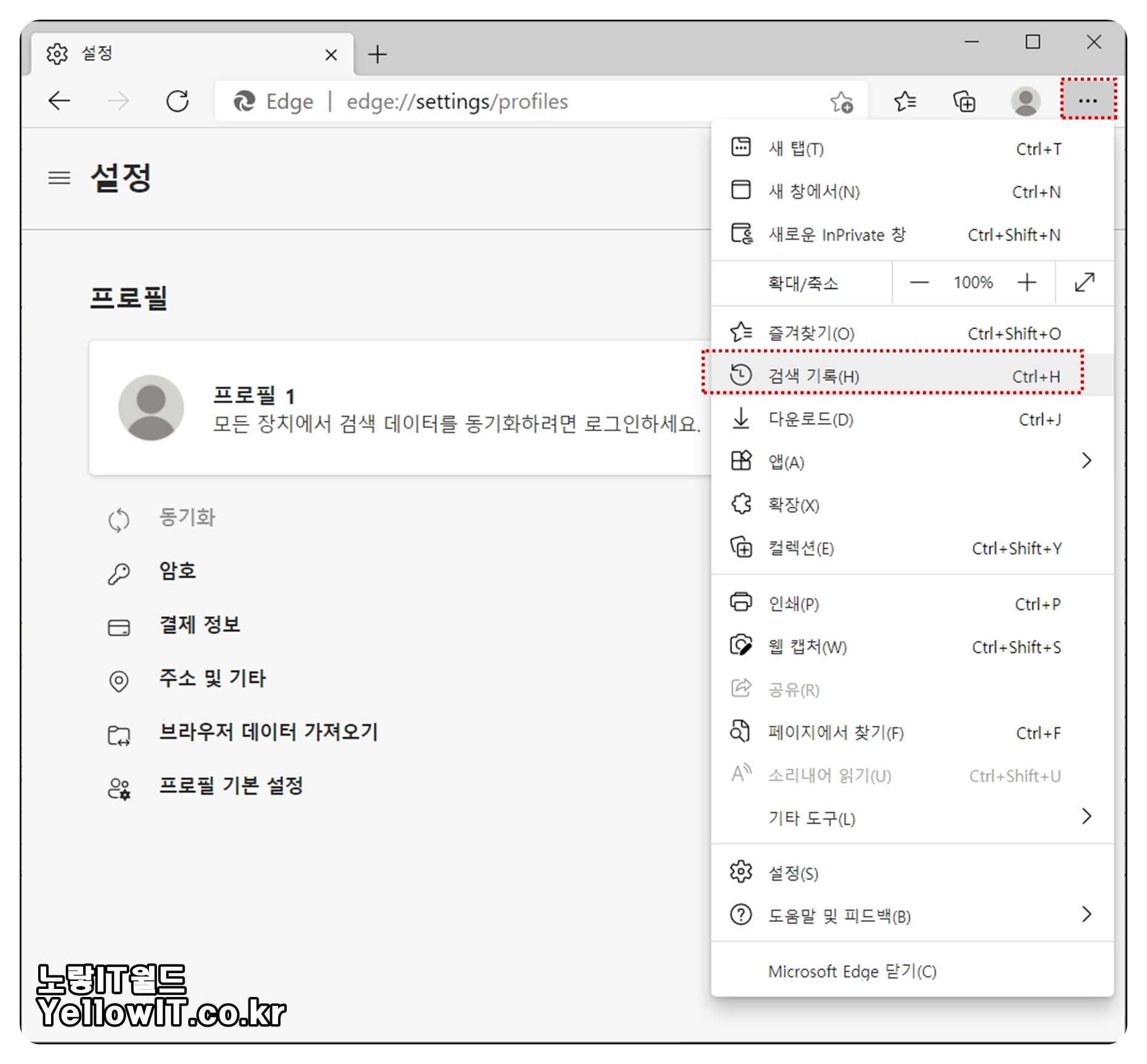 마이크로소프트 엣지 인터넷 방문기록 삭제