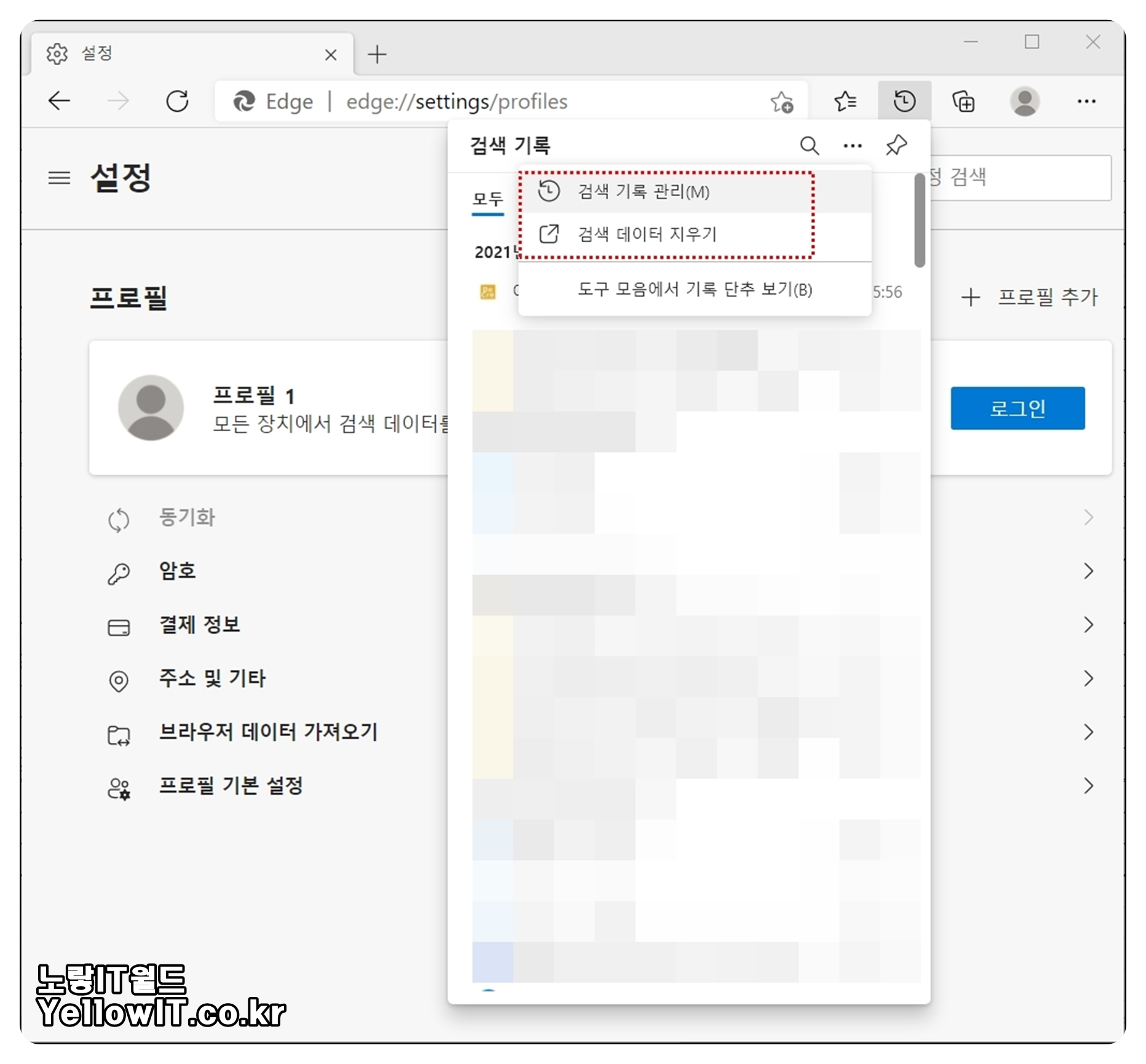 마이크로소프트 엣지 인터넷 방문기록 삭제