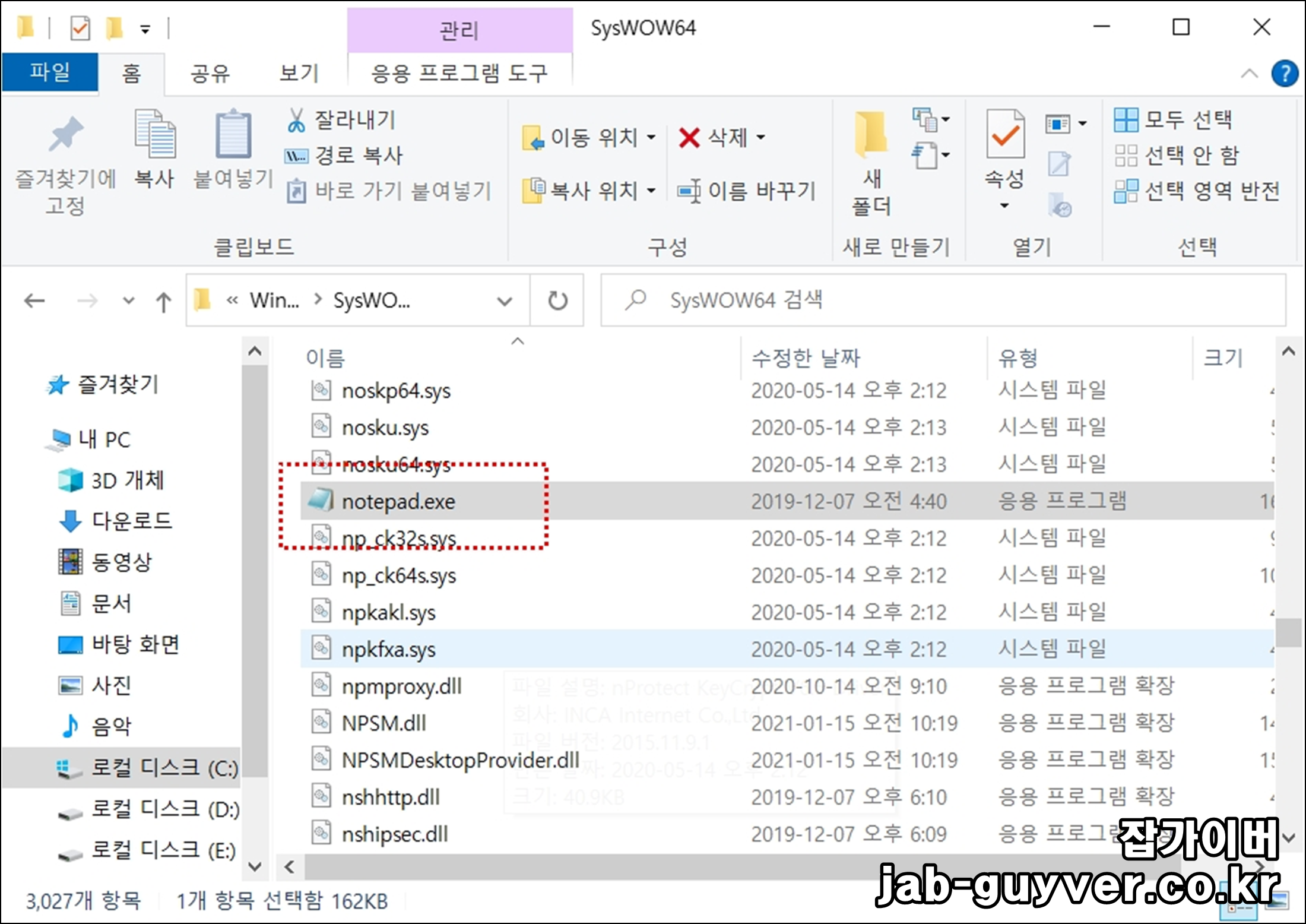 그리고 윈도우64비트의 경우 아래 경로로 이동합니다.